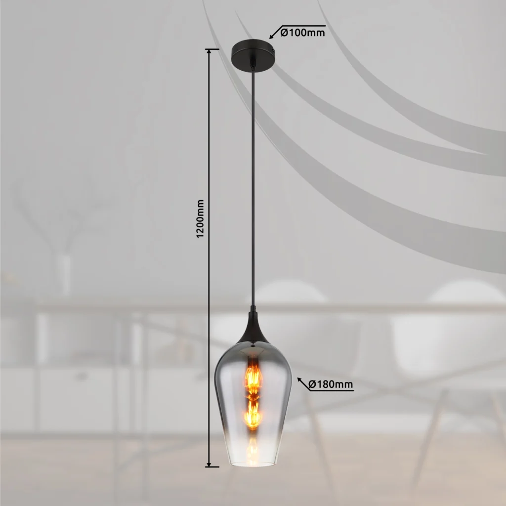Okrugla viseća lampa sa lukovičastim hromiranim staklom je elegantan i moderan element osvetljenja za vaš dom. Telo napravljeno od mat crnog metala i sjajni stakleni abažur u hromiranom izgledu daju ovoj visećoj lampi bezvremenski i stilski izgled. Sa grlom E27, viseća lampa je pogodna za razne izvore svetlosti i pruža prijatno osvetljenje u vašim sobama. Sa prečnikom od 180 mm, ova viseća lampa je savršena za upotrebu u hodnicima, dnevnim sobama, spavaćim sobama ili iznad trpezarijskih stolova za stvaranje moderne atmosfere. Unesite dašak elegancije u svoj dom ovom visećom lampom napravljenom od mat crne boje i ukusnim hromiranim staklenim abažurom i postavite stilske akcente u svoj enterijer.