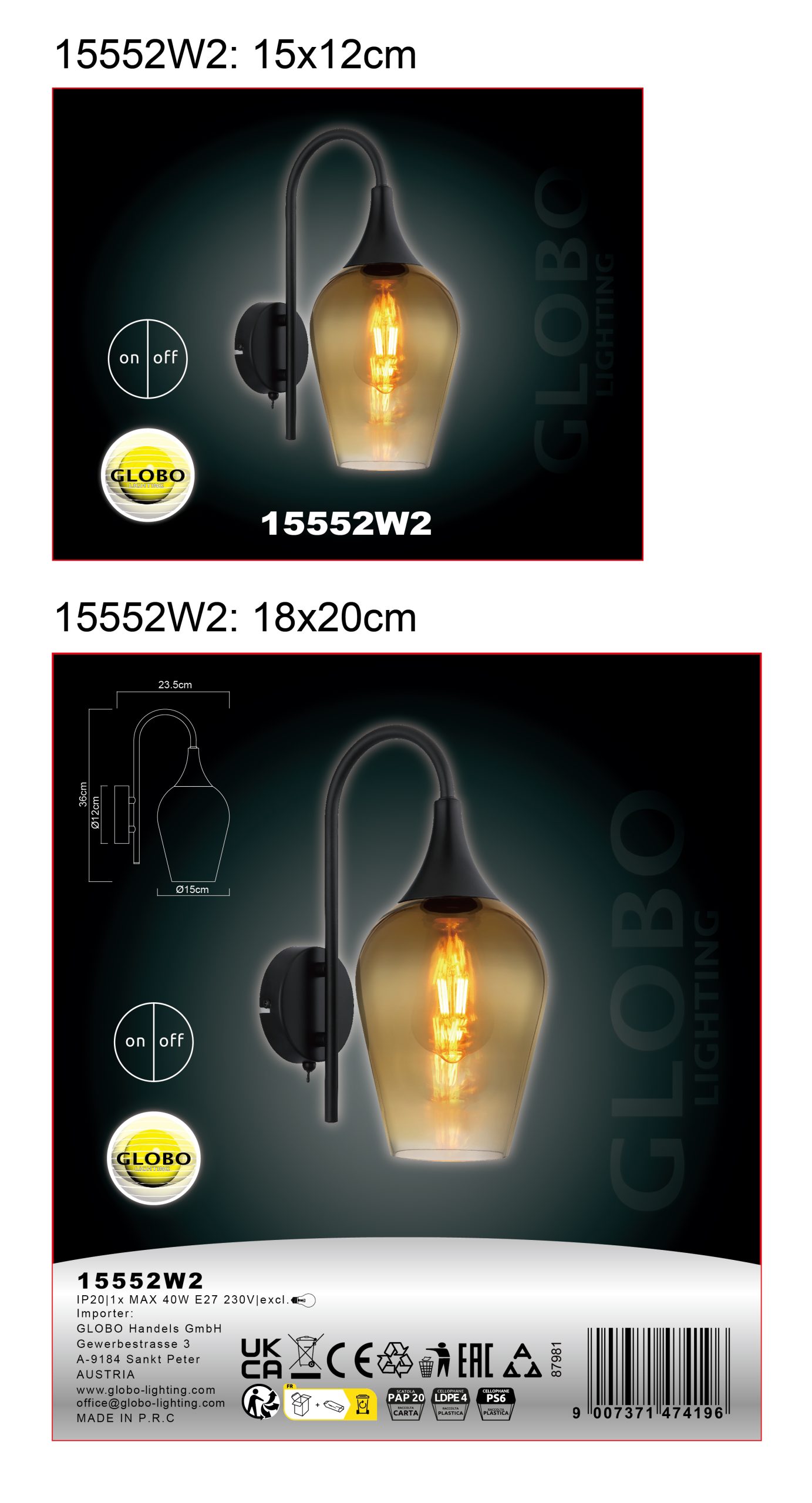 Zidna lampa LAVUS impresionira svojim zakrivljenim oblikom i lukovičastim staklom koje je usmereno nadole i pruža prijatnu raspodelu svetlosti. Telo napravljeno od crnog mat metala savršeno se usklađuje sa providnim, tekućim staklom zlatnog izgleda i daje lampi luksuzan izgled. Kao stilski izvor svetlosti u hodnicima, dnevnim sobama ili spavaćim sobama, zidna lampa LAVUS postavlja elegantne akcente i stvara glamuroznu atmosferu. Sa svojim bezvremenskim dizajnom i visokokvalitetnom izradom, zidna lampa LAVUS je obogaćenje za svaki dom. Dozvolite sebi da vas očara topla igra svetlosti i stilski šarm lampe LAVUS i doživite potpuno novu vrstu osvetljenja sobe. Otkrijte elegantnu zidnu lampu za vaš lični životni ambijent sada!