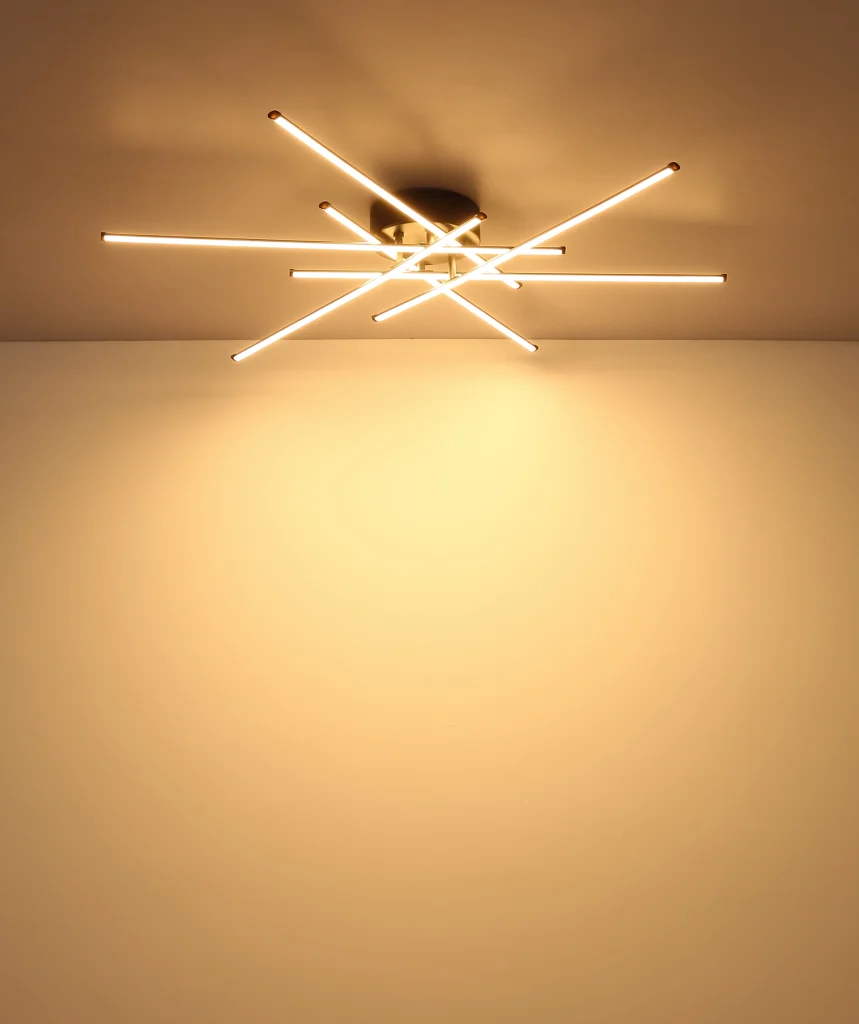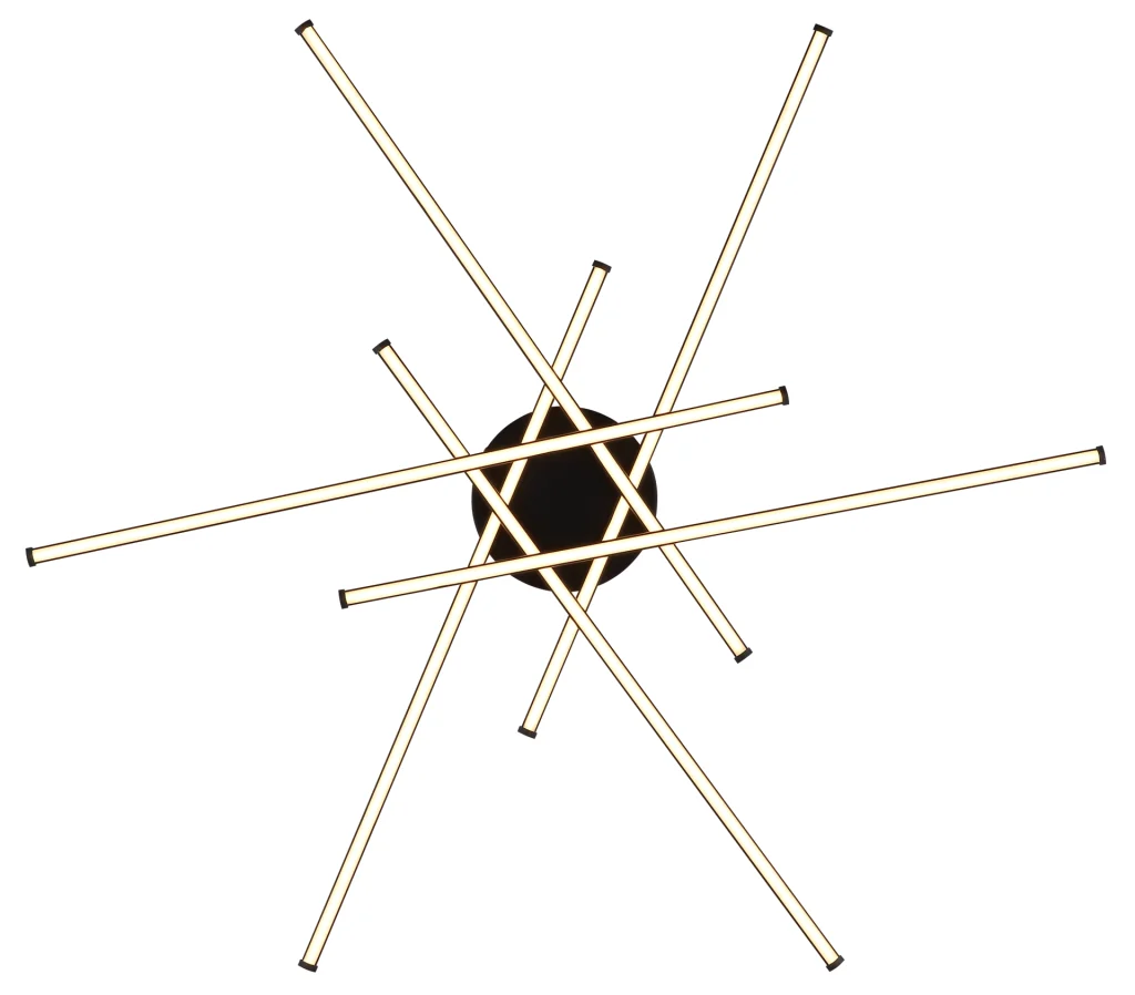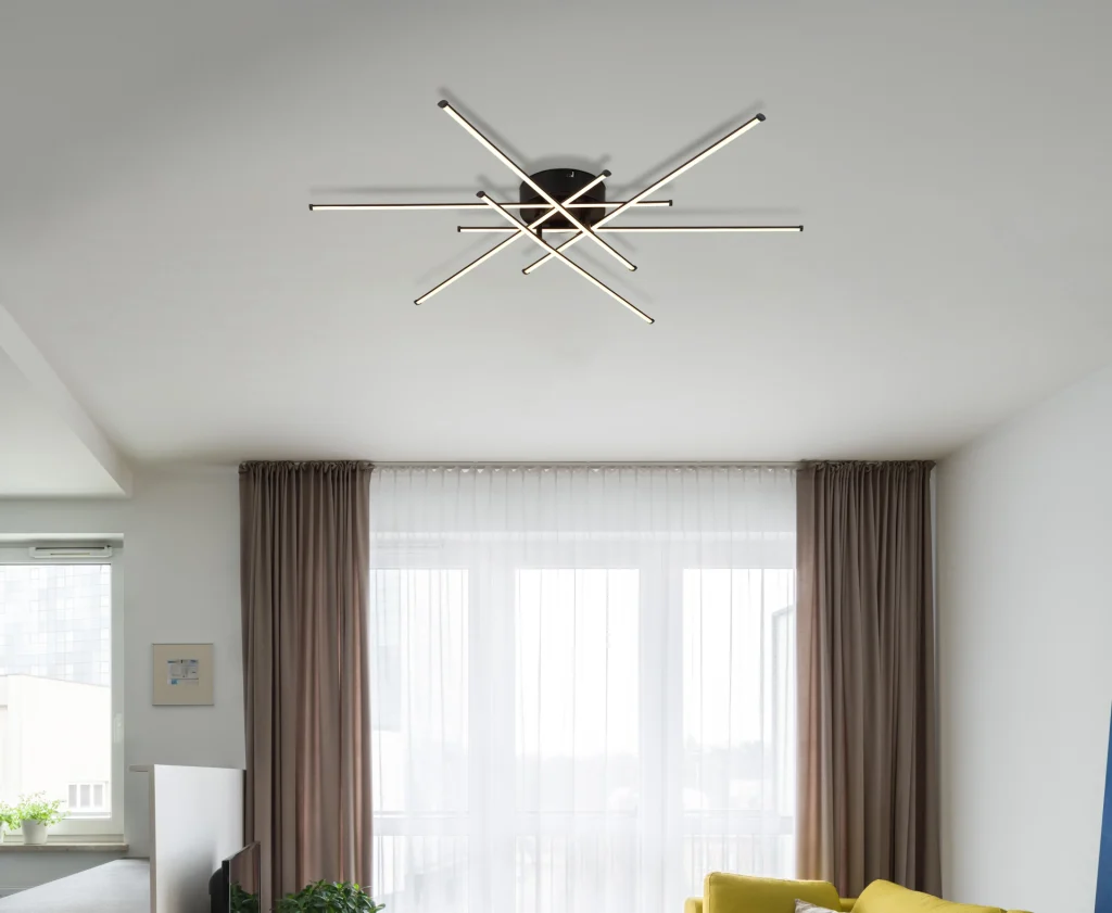 Plafonska lampa LAWSON – moderan dizajn za vaš dom Plafonska lampa LAWSON impresionira svojim jedinstvenim dizajnom u obliku zvezde, koji se sastoji od nekoliko šipki postavljenih jedna iznad druge i obezbeđuje upečatljiv, dinamičan izgled. Telo napravljeno od mat crnog metala i abažur od crnog, mat aluminijuma sa opalnom plastikom nude savršenu kombinaciju modernog stila i funkcionalnosti. Sa prečnikom od 800 mm, lampa je idealna za veće prostorije i pruža ravnomerno, svetlo osvetljenje. Integrisana LED tehnologija nudi temperaturu boje od 4000 K, što pruža prijatno, neutralno belo osvetljenje. Ova lampa ne samo da postavlja stilske akcente, već pruža i energetski efikasno, dugotrajno osvetljenje. Plafonska lampa LAWSON je savršen izbor za moderne životne prostore koji kombinuju elegantan dizajn i visoku funkcionalnost.
