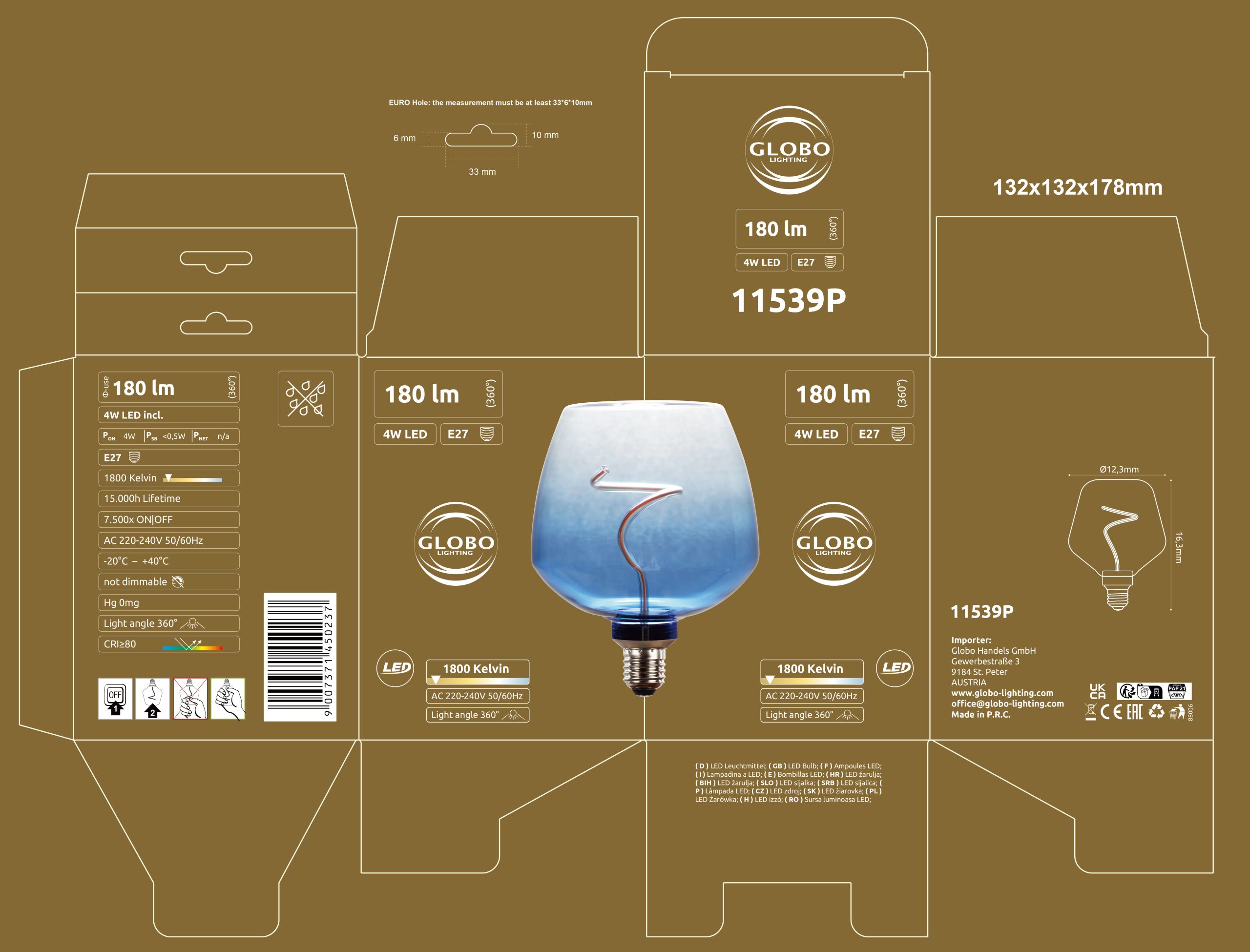 Otkrijte konusnu LED sijalicu okruglog dizajna, koja impresionira svojim jedinstvenim staklenim kućištem u boji petroleja sa jasnim gradijentom boja. Sa prečnikom od 123 mm, kombinuje elegantan dizajn i modernu tehnologiju. Sijalica nudi meko i atmosfersko osvetljenje zahvaljujući svetlosnoj snazi od 180 lumena na toploj temperaturi boje od 1800 Kelvina. Savršena je za stvaranje ugodne atmosfere i pruža prijatno svetlo u vašem prostoru. Grlo E27 omogućava jednostavnu ugradnju u širok spektar svetiljki. Zahvaljujući kombinaciji stilskog staklenog dizajna i energetski efikasne LED tehnologije, ovaj izvor svetlosti nudi ne samo estetsku privlačnost, već i visoku funkcionalnost. Idealan je izbor za one koji žele da obogate svoje životne prostore dodirom luksuza i topline.