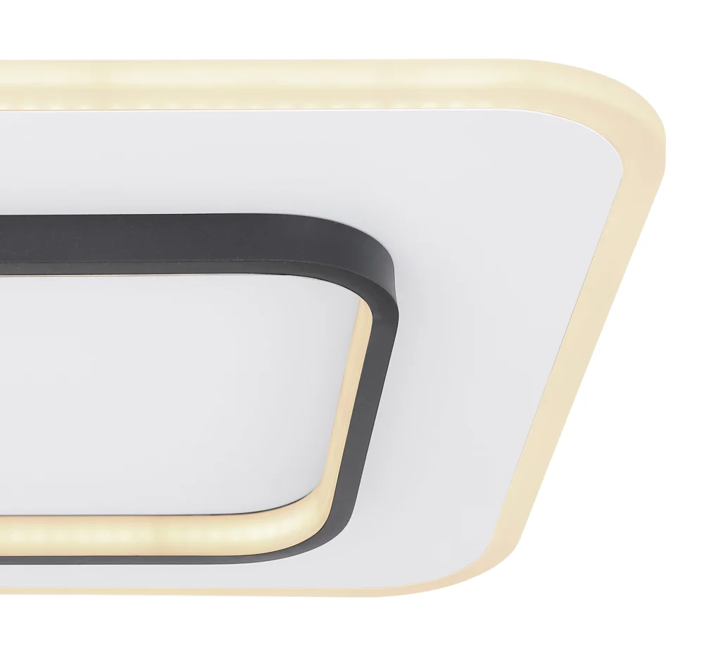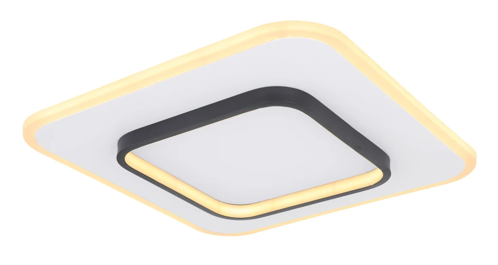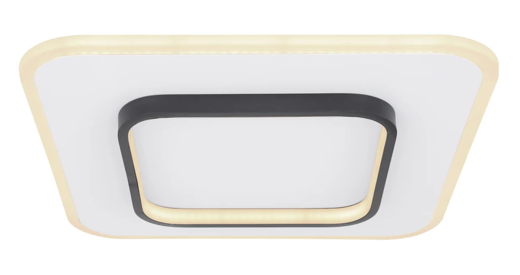 Ova kvadratna plafonska lampa iz serije Lima (45,8×45,8 cm) uverava svojim jednostavnim dizajnom napravljenim od belog metala i opal akrila. Crni kvadratni prsten u sredini plafonske lampe je još jedna karakteristika koja je čini divnom za kombinovanje. LED sijalice pružaju 2500 lumena jake svetlosti. Pored toga, uključeni daljinski upravljač vam ne samo da nudi mogućnost prigušivanja svetla, već i podešavanje boje svetlosti u nekoliko koraka između toplo bele (3000 Kelvina) i hladne bele (6000 Kelvina) prema vašim željama. Sa ovom plafonskom lampom možete stvoriti stilski ambijent u svom enterijeru.