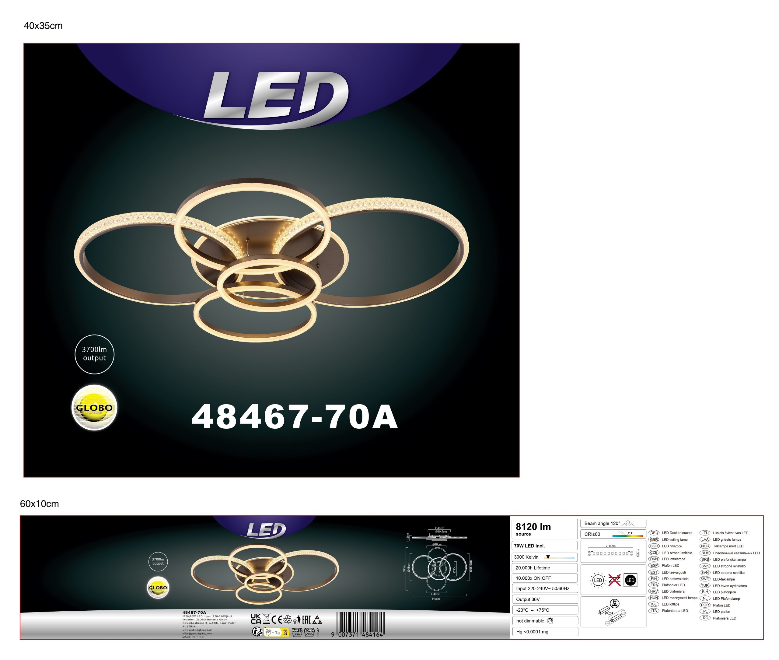 Plafonska lampa LORELEI kombinuje moderan dizajn sa elegantnom funkcionalnošću i predstavlja apsolutni faktor za svaku prostoriju. Sa svojim jedinstvenim pravougaonim kućištem napravljenim od antracit mat lakiranog metala i pet ofsetnih prstenova od providnih i opal akrilnih kristala, stvara harmoničnu raspodelu svetlosti i impresivan ambijent. Velikodušan svetlosni izlaz od 3700 lumena stvara svetlu i privlačnu atmosferu, dok temperatura boje od 3000K stvara toplo, prijatno svetlo. Savršena za dnevne sobe, trpezarije ili hodnike, ova LED plafonska lampa transformiše svaku prostoriju u stilsku oazu blagostanja. Visokokvalitetni materijali i dobro osmišljen dizajn čine LORELEI ne samo funkcionalnim izvorom svetlosti, već i umetničkim elementom dizajna koji ističe karakter vašeg doma. Postavite akcente ovom plafonskom lampom i uživajte u stilskom osvetljenju u vašoj dnevnoj sobi.