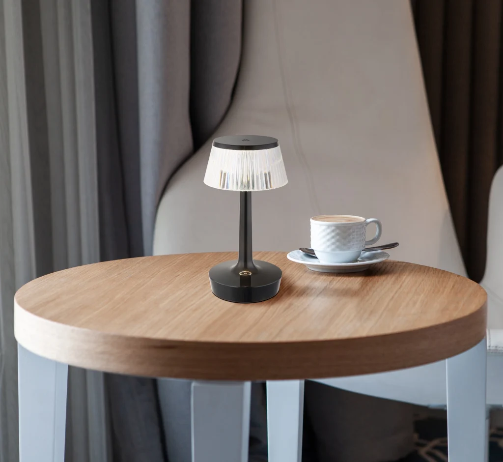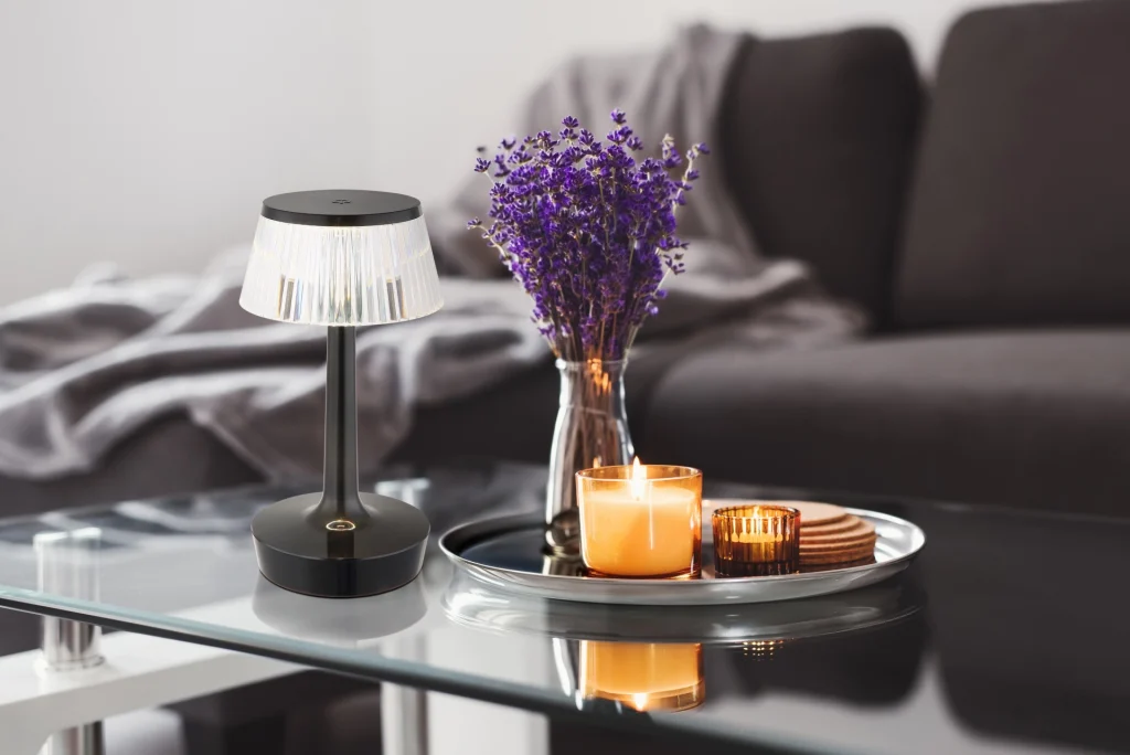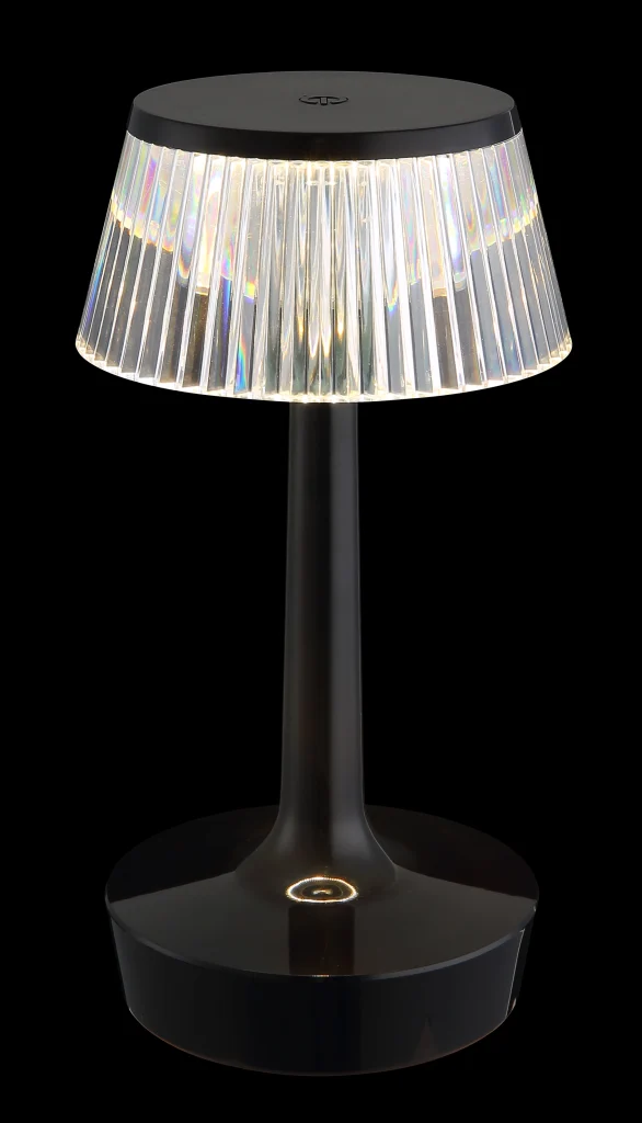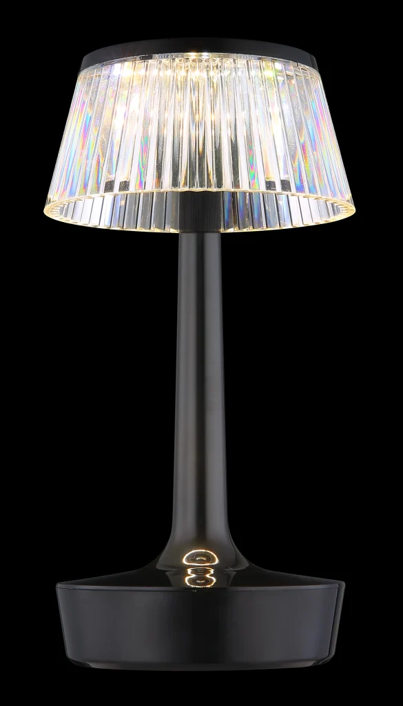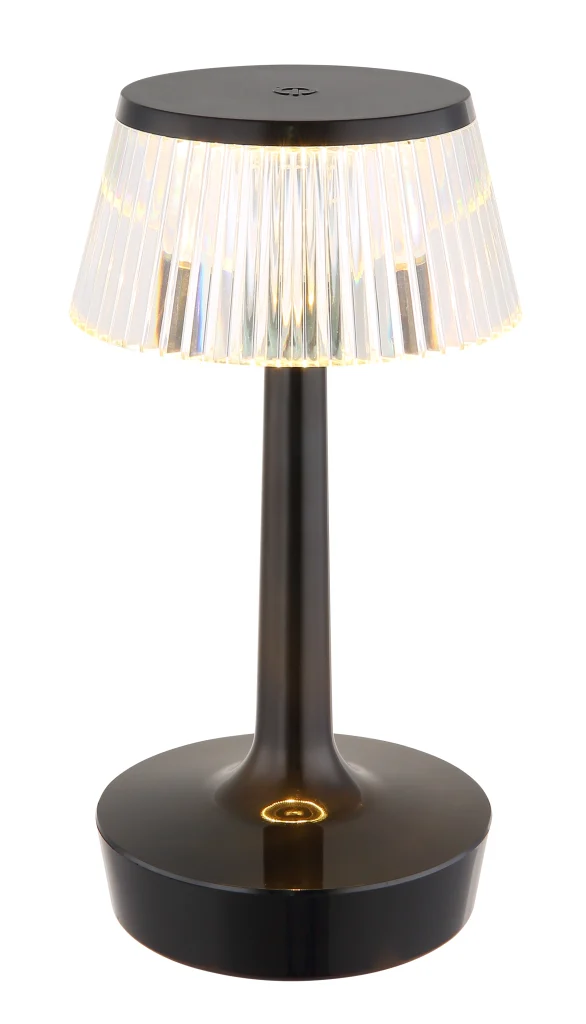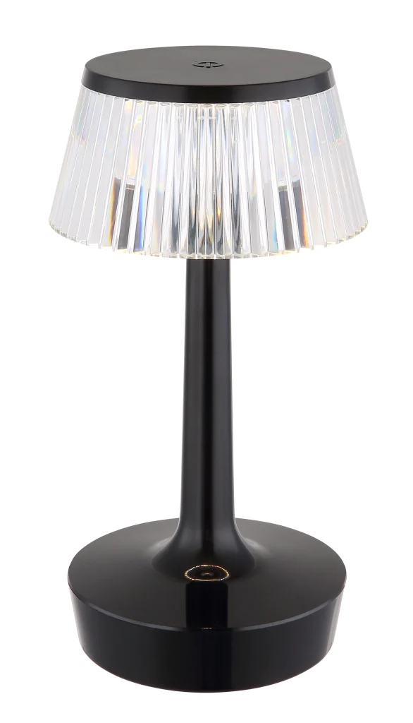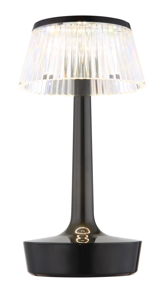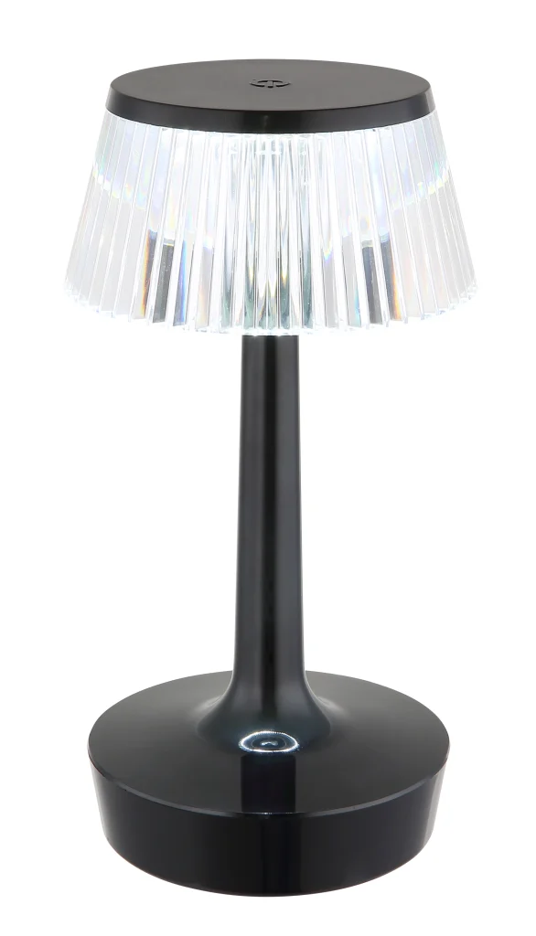 LUCIO PLASTIČNA CRNA MAT STONA LAMPA je elegantna, okrugla stona lampa sa fascinantnim abažurom koji podseća na kristal. Telo je napravljeno od mat crne plastike, što lampi daje moderan i stilski izgled. Prozirni abažur sa kristalnim efektom stvara blistavu igru svetlosti i posebnu atmosferu u svakoj prostoriji. LUCIO je opremljena bezstepenim dodirnim dimerom koji omogućava individualno podešavanje intenziteta svetlosti, a boje se mogu fiksirati po želji. Praktični dodirni prekidač za uključivanje/isključivanje i priloženi USB kabl za punjenje čine rukovanje jednostavnim i praktičnim. Sa prečnikom od 120 mm i svetlosnim izlazom od 84 lumena, stona lampa nudi prijatan sjaj. Temperatura boje se kreće od 2724 K do 3737 K. Nakon vremena punjenja od približno 3 sata, svetiljka nudi vreme osvetljenja od približno 8 sati i ostaje upaljena tokom punjenja.