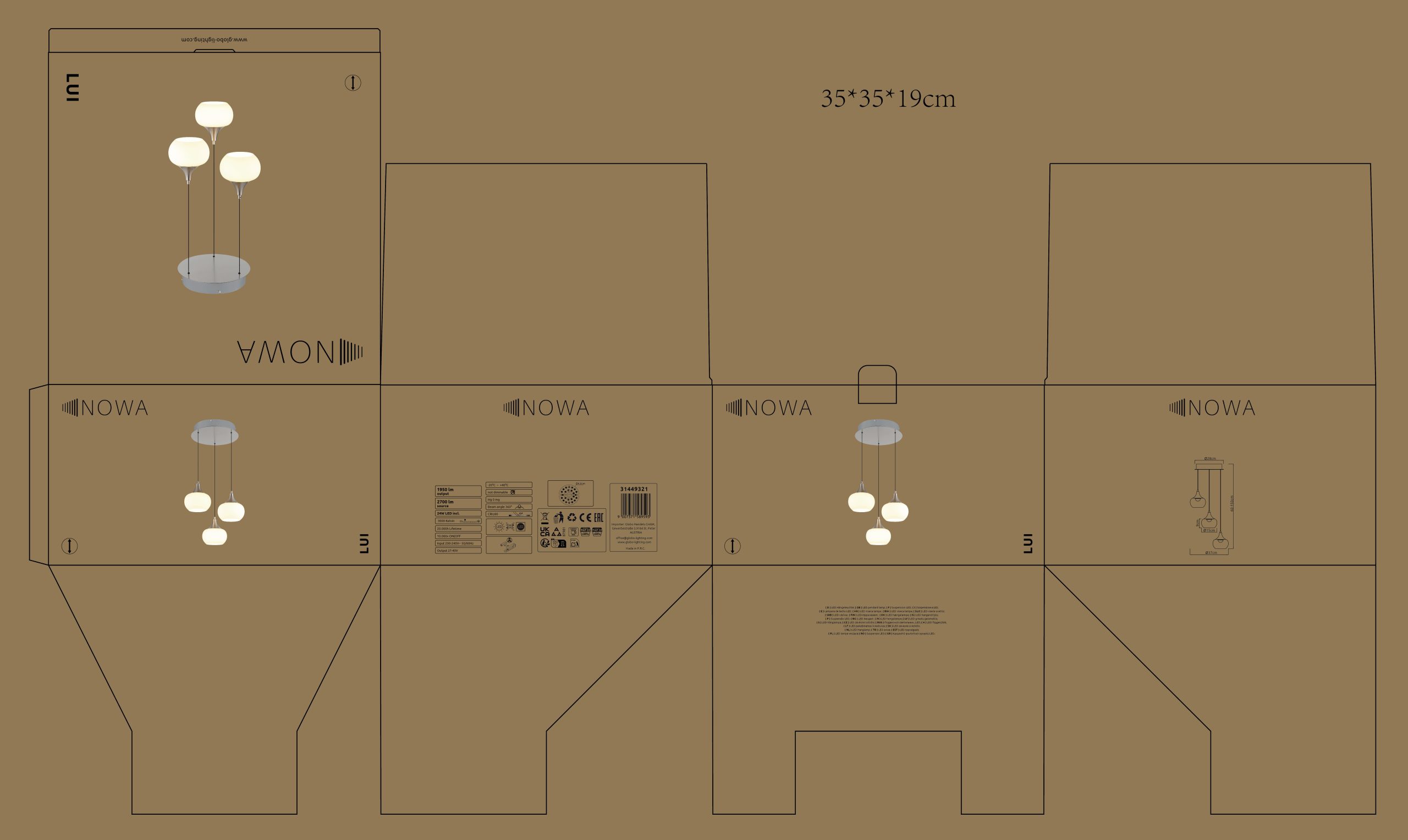 Viseća lampa LUI impresionira bezvremenskom elegancijom i modernom funkcionalnošću, postajući stilska fokusna tačka u vašem dnevnom boravku ili trpezariji. Okrugli nadstrešnica napravljena od mat metala boje nikla formira elegantnu osnovu za tri lukovičasta staklena abažura izrađena od opal stakla u kombinaciji sa opal plastikom. Ova harmonična kombinacija materijala pruža meku, ravnomernu i bez odsjaja raspodelu svetlosti koja ispunjava prostoriju toplom i privlačnom atmosferom. Sa prečnikom od 370 mm, viseća lampa ima uravnotežen izgled i idealna je iznad trpezarijskih stolova, bočnih stočića ili kuhinjskih ostrva. Poseban akcenat je integrisano podešavanje visine sa mekim podizanjem, koje omogućava lako i bezstepeno podešavanje visine za fleksibilno osvetljenje. Integrisana LED tehnologija isporučuje 1950 lumena sa toplo belom temperaturom boje od 3000 K, obezbeđujući energetski efikasno i dugotrajno osvetljenje. LUI savršeno kombinuje elegantan dizajn, visoku udobnost i modernu tehnologiju osvetljenja.