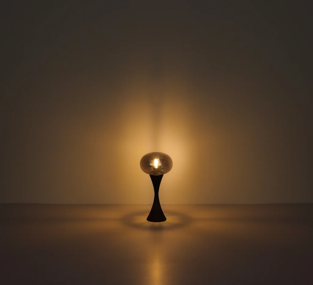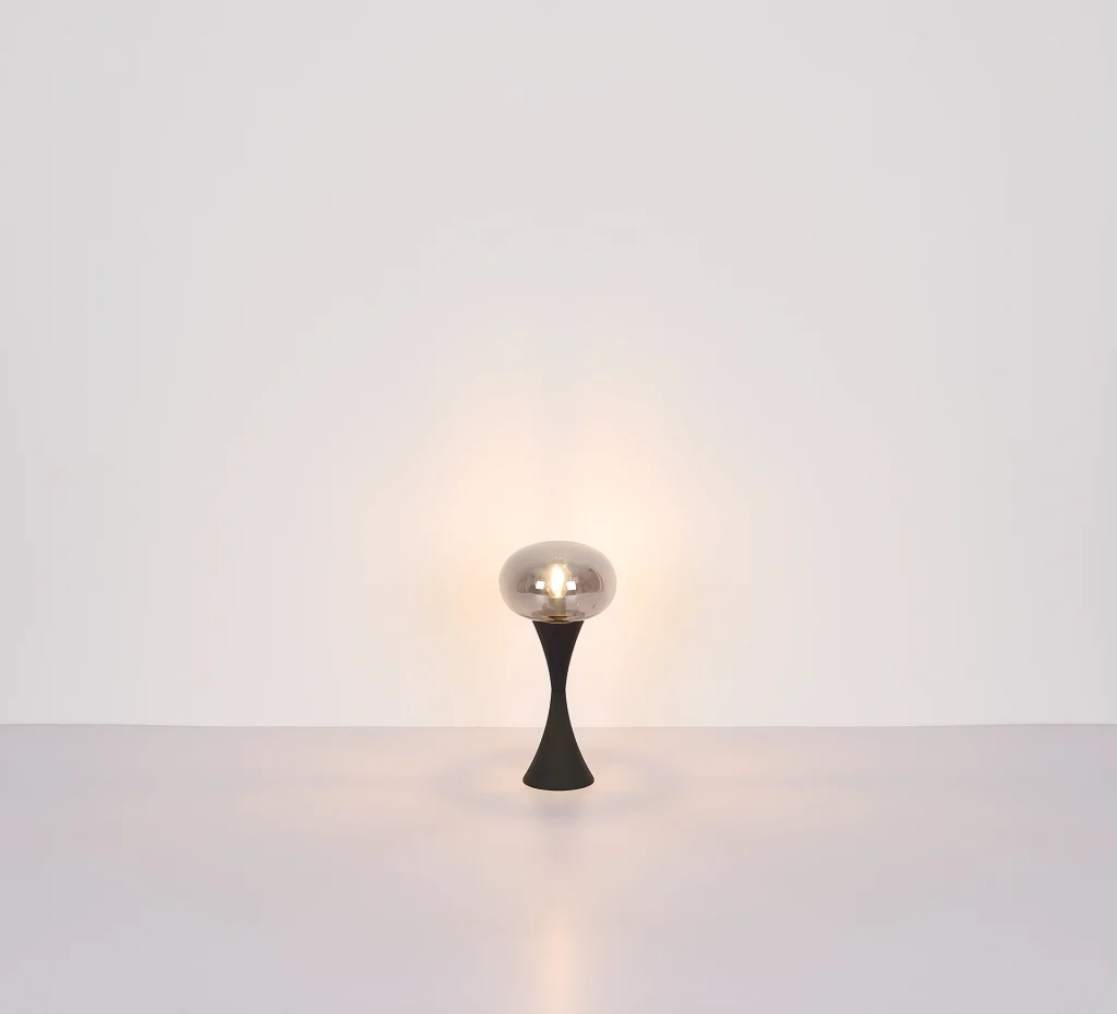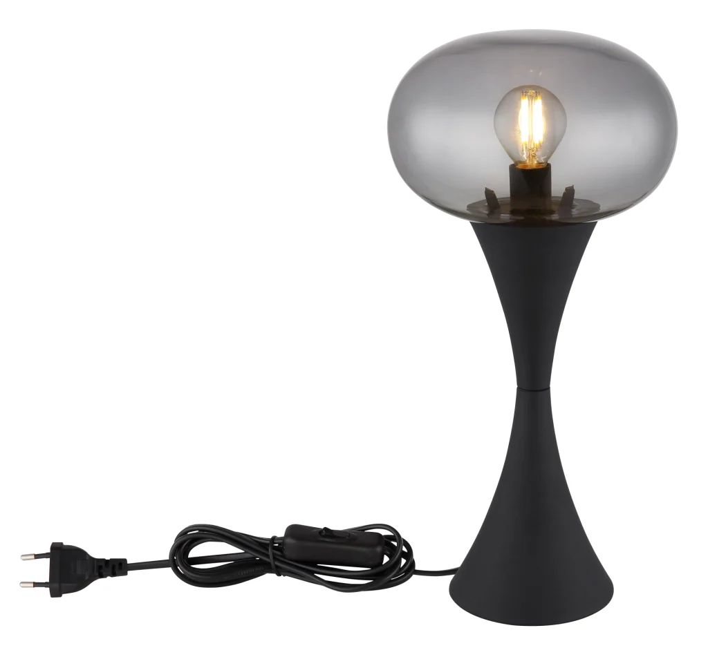 Stona lampa RONALD sa crnim, mat metalnim kućištem i abažurom od dimljenog stakla kombinuje modernu estetiku sa praktičnom funkcionalnošću. Prekidač na kablu obezbeđuje lako rukovanje. Pogodna za sijalice E14 (ekskluzivno).