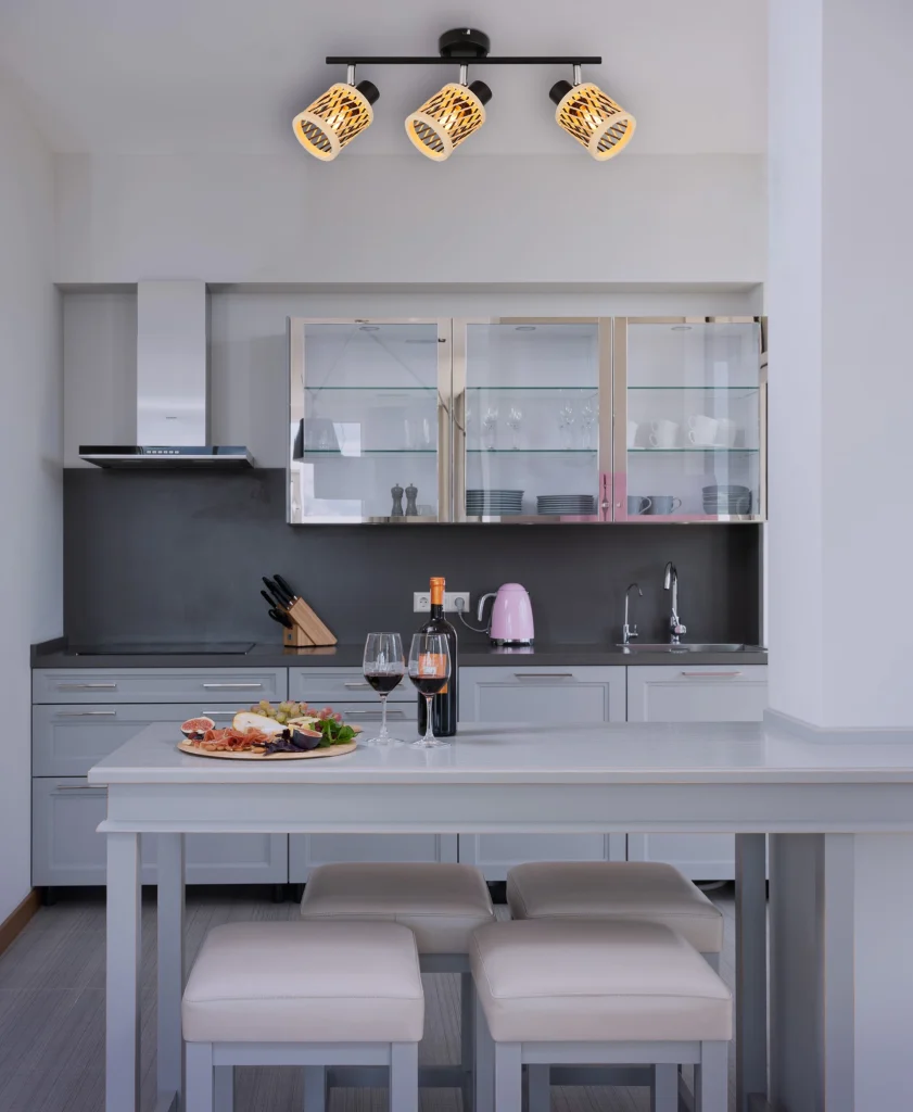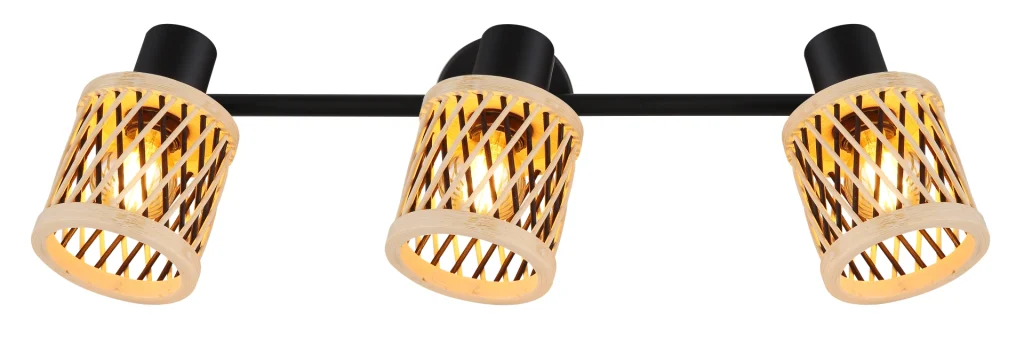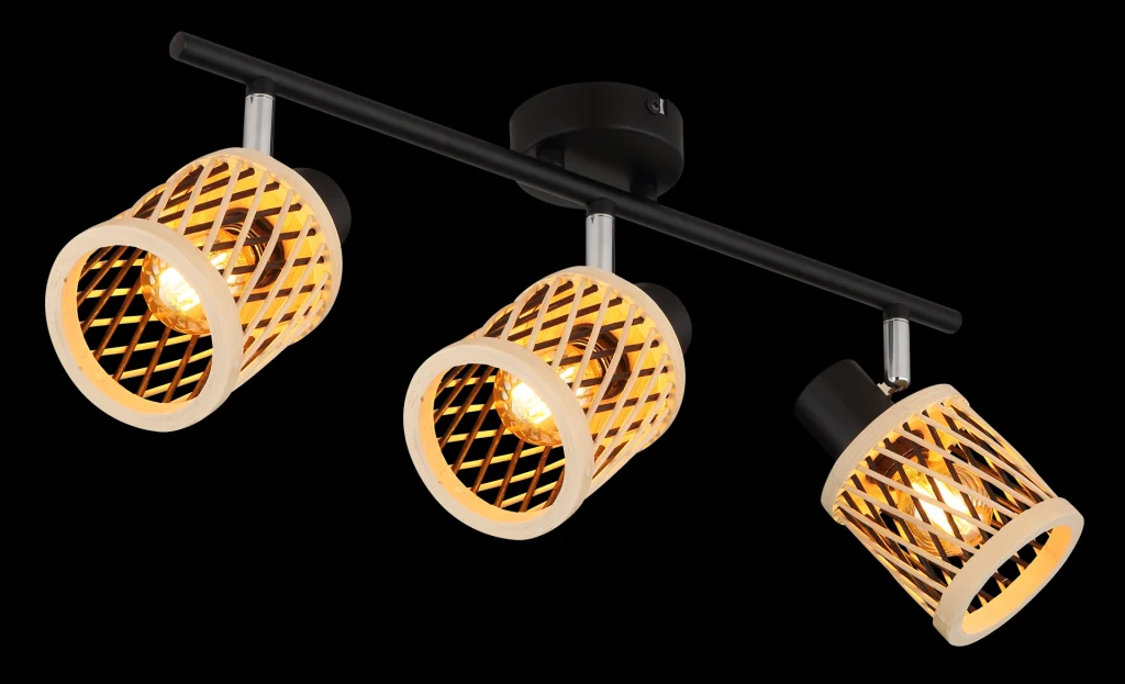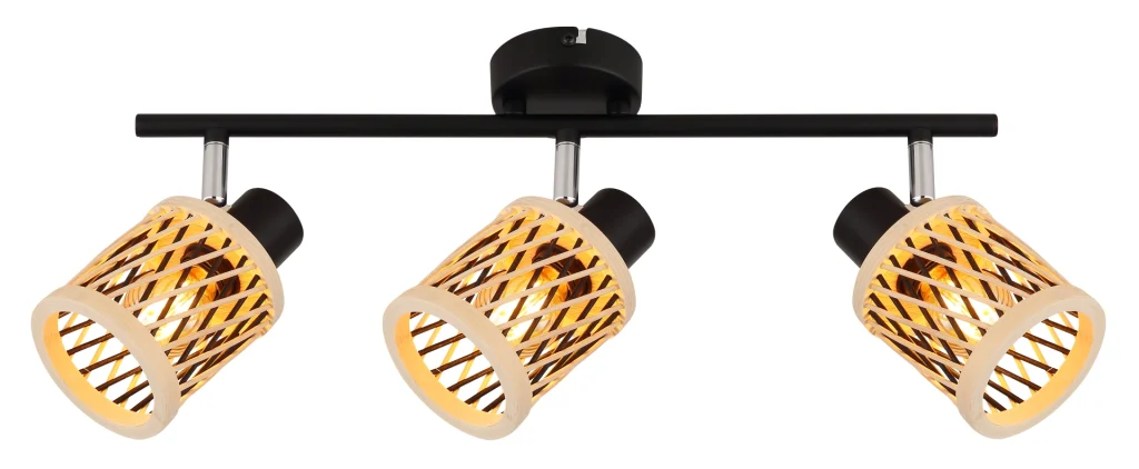 Reflektor MALI kombinuje vintage dizajn sa prirodnim šarmom. Ravna šina od mat crnog metala nosi abažure napravljene od prirodne i crne bambusove mreže, koje stvaraju toplu i privlačnu atmosferu osvetljenja. Sa dužinom od 450 mm i širinom od 85 mm, ovaj reflektor je posebno fleksibilan i savršen je za osvetljavanje većih prostorija, hodnika ili kao akcentno osvetljenje u dnevnim boravcima. Šarmantna mešavina bambusovog tkanja i crnog metala daje lampi bezvremenski, rustični izgled koji podjednako dobro funkcioniše i u vintage i u modernim enterijerima. Reflektor MALI se isporučuje bez E14 LED sijalica, tako da možete izabrati izvor svetlosti prema svojim željama. Idealan za stilsko osvetljenje koje je istovremeno funkcionalno i dekorativno, MALI postavlja posebne akcente i unosi dašak prirode u vaš dom.