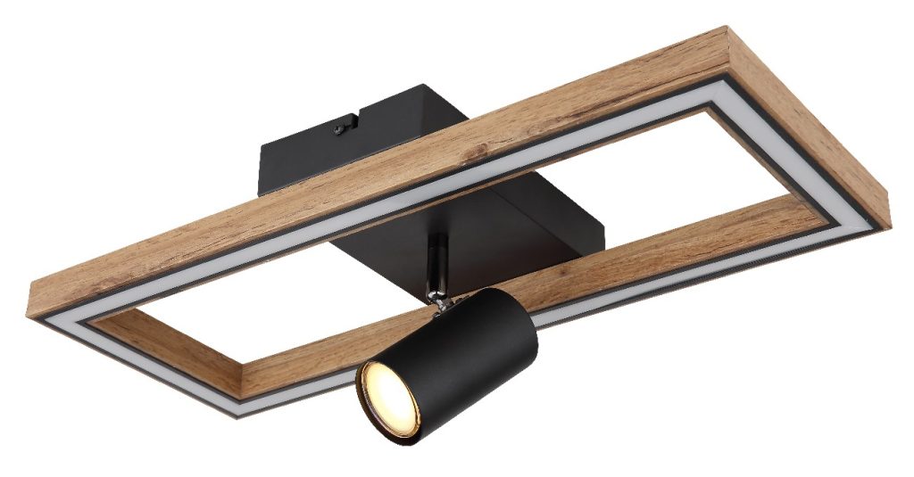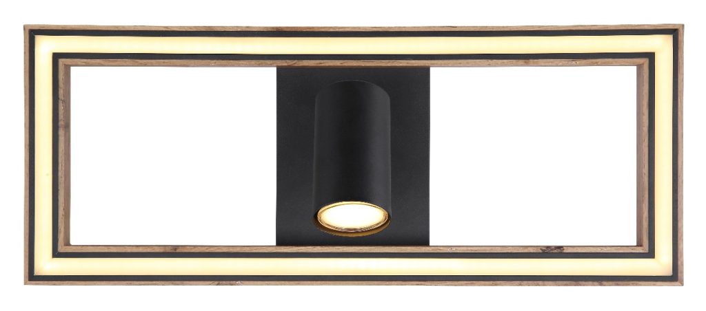 Ova plafonska lampa serije MANDERA napravljena je od mat crnog lakiranog metala, MDF-a sa efektom tamnog drveta i opalne plastike. Može se zatamniti u nekoliko koraka preko zidnog prekidača i ima funkciju memorije. U prvoj fazi LED svetli u kadru, u drugoj fazi GU10 reflektor i u trećoj fazi oboje zajedno. Dimenzije lampe su LxWxH: 500x200x145mm. Plafonska lampa dolazi sa LED snagom od 16W i 230V, koja obezbeđuje izvor svetlosti od 1800lm i izlaz od 1100lm na temperaturi boje od 3000K. GU10 LED sa snagom od 5W i 230V nije uključen.