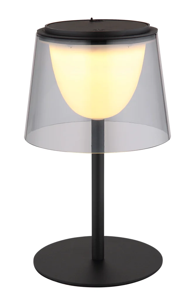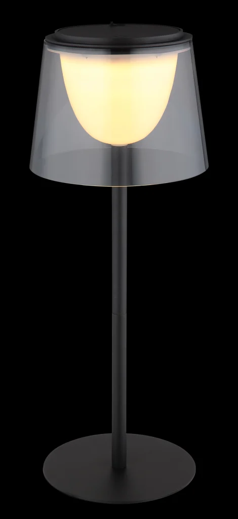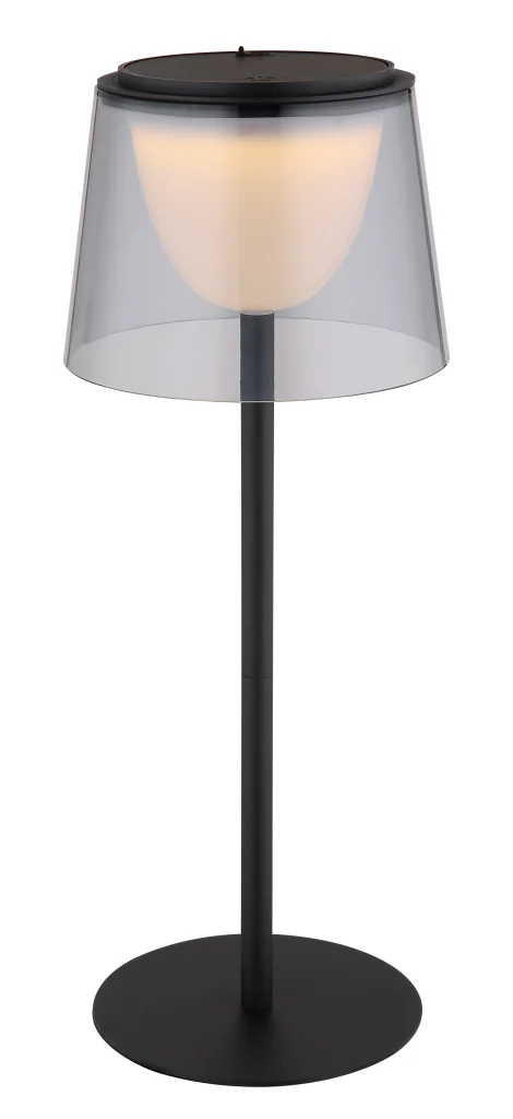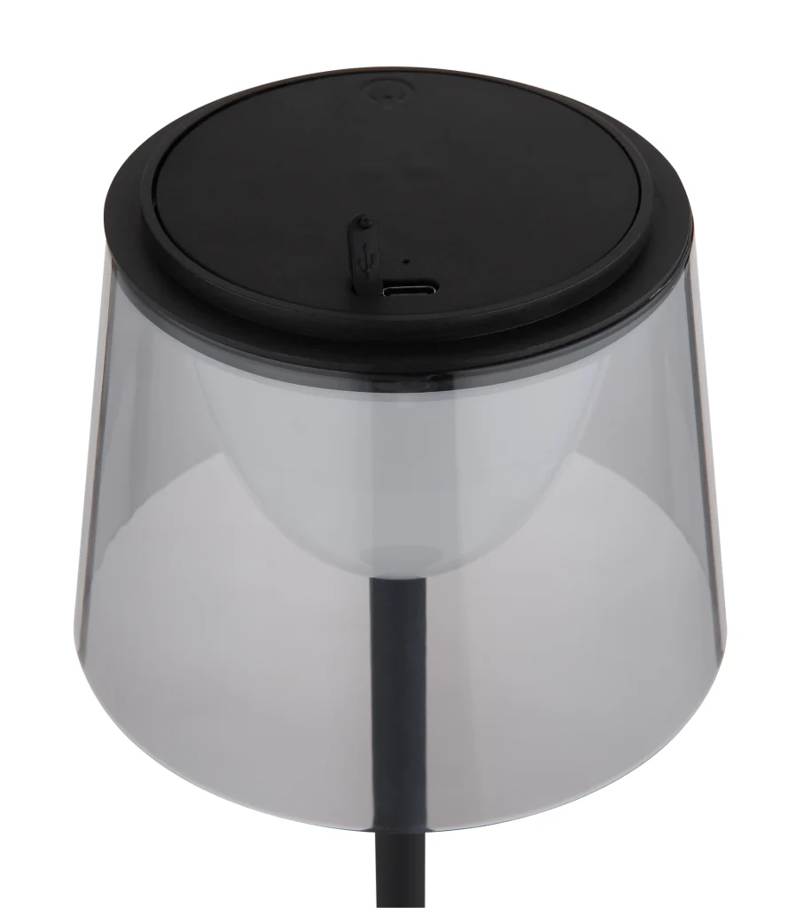 Stona lampa MARIAM kombinuje moderan dizajn sa raznovrsnom funkcionalnošću. Karakteriše je pravo metalno kućište u elegantnom, crnom mat izgledu, upotpunjeno plastičnim abažurom boje dima, koji, u kombinaciji sa crnom, mat plastikom, pruža savremenu estetiku. Svetiljka se može prigušiti i nudi besstepeni dodirni dimer sa praktičnom funkcijom memorije koja čuva vaš željeni intenzitet svetlosti. Intuitivno dodirno uključivanje/isključivanje olakšava upotrebu. MARIAM dolazi sa adapterom i USB kablom za punjenje. Vreme punjenja je oko 3 sata i nudi vreme rada od oko 3 sata, dok nastavlja da svetli tokom punjenja. Sa svetlosnom efikasnošću od 150 lumena i temperaturom boje od 3000 K, idealna je za atmosfersko osvetljenje. Klasa zaštite IP44 osigurava da je svetiljka otporna na prskanje i stoga se može koristiti i u zaštićenim spoljašnjim prostorima.
