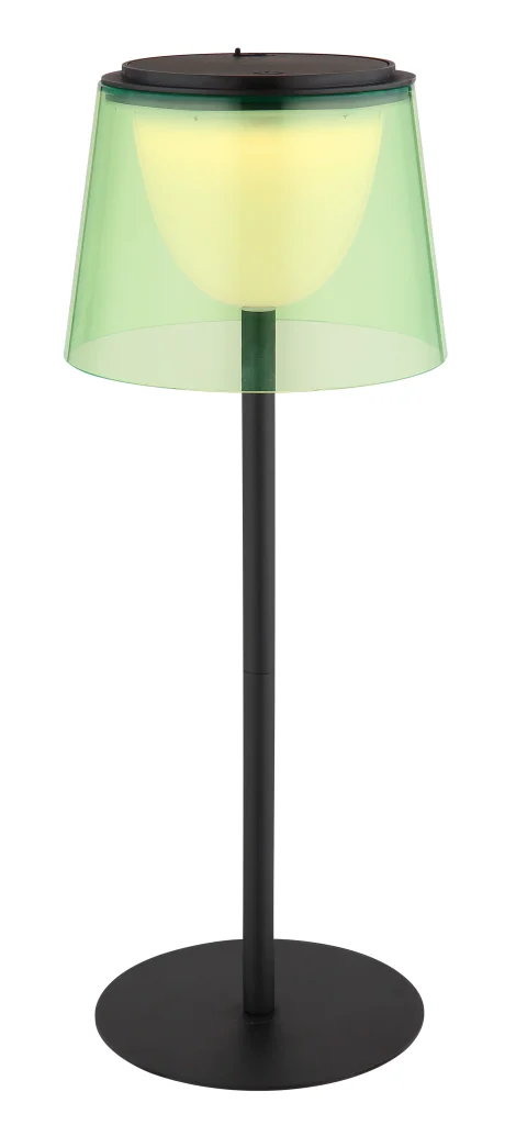Stona lampa MARIAM kombinuje moderan dizajn sa visokom funkcionalnošću. Odlikuje se elegantnim kružnim dizajnom sa ravnom cevčicom od mat crnog metala, što dodaje dašak savremene estetike. Abažur od zelene i crne plastike dodaje stilski i savremeni dodir. Svetiljka se može prigušiti i nudi besstepeni dodirni dimer sa funkcijom memorije koja čuva vaš željeni intenzitet svetlosti. Sa praktičnom funkcijom uključivanja/isključivanja na dodir, osvetljenje se može lako kontrolisati. Adapter i USB kabl za punjenje su uključeni u obim isporuke, što omogućava rad svetla tokom punjenja. MARIAM-u je potrebno oko 3 sata da se napuni i nudi vreme rada do 3 sata sa svetlosnim izlazom od 150 lumena i temperaturom boje od 3000 K. Zahvaljujući klasi zaštite IP44, svetlo je otporno na prskanje i pogodno za širok spektar primene.