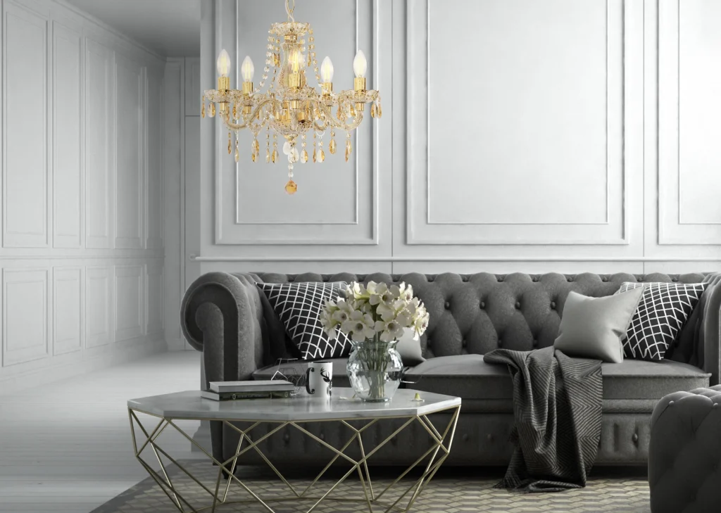 Luster MARIE od zlatnog metala dodaće elegantan dodir svakoj prostoriji. Sa prečnikom od 480 mm i visinom od 1500 mm, on je impresivan element koji će doći do izražaja u svakoj prostoriji. Prozirni akrilni kristali pružaju blistave refleksije svetlosti i stvaraju glamuroznu atmosferu. Visina lustera se može skratiti, tako da se idealno može prilagoditi različitim visinama prostorija. Luster zahteva pet E14 sijalica snage do 40W, koje nisu uključene u isporuku. Uživajte u stilskom osvetljenju i luksuznom izgledu koji luster MARIE unosi u vaš dom. Savršen je izbor za elegantne trpezarije, dnevne sobe ili hodnike i transformiše svaku prostoriju u stilski ambijent. Postavite glamurozne akcente u svom domu pomoću ovog lustera.