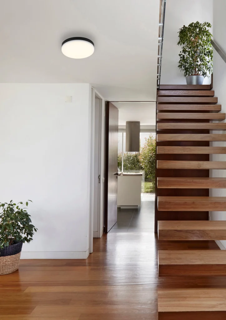 Plafonska lampa MATTHEW je primeran predstavnik moderne, minimalističke dizajnerske arhitekture. Njen ravni i okrugli oblik se savršeno uklapa u arhitekturu svake prostorije. Telo od crne lakirane plastike i abažur od opal plastike stvaraju harmoničnu kompoziciju koja je elegantno grupisana oko kontrolne table. Sa svetlosnim snagama od 800 lumena i temperaturom boje od 4000K, plafonska lampa MATTHEW je idealna za osvetljavanje dnevnih soba, kancelarija ili radnih prostora. Njena kompaktna veličina od ø 220 mm čini je popularnim izborom čak i u malim prostorima.