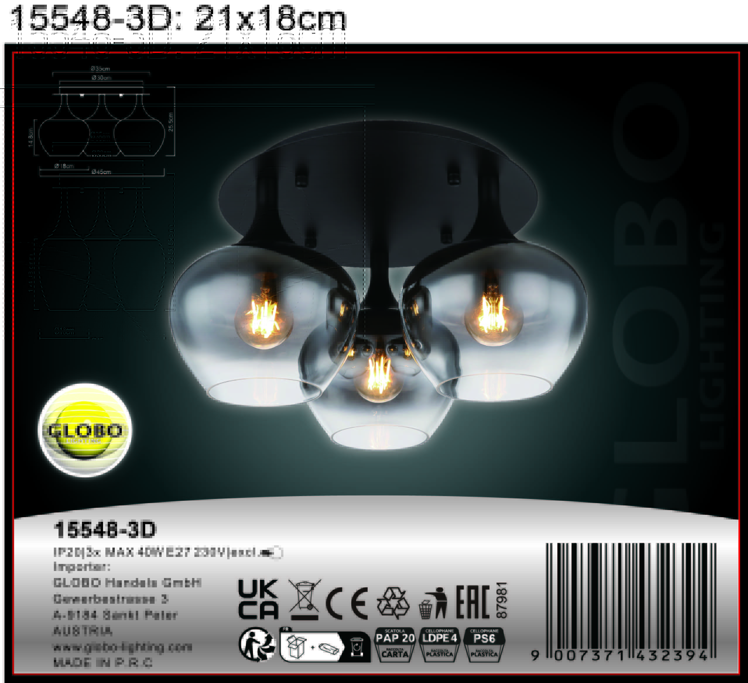 Ova prelepa plafonska lampa inspiriše odličnim dizajnom. Na okruglom plafonskom nosaču (Ø 30 cm) nalaze se tri grla E27 sa lepo oblikovanim staklenim abažurima boje dima (Ø 18 cm). Grla E27 vam omogućavaju da sami odredite boju svetlosti i osvetljenost do maksimalne snage od 40 vati. Zbog dugotrajnosti i uštede energije, preporučujemo LED sijalice.
