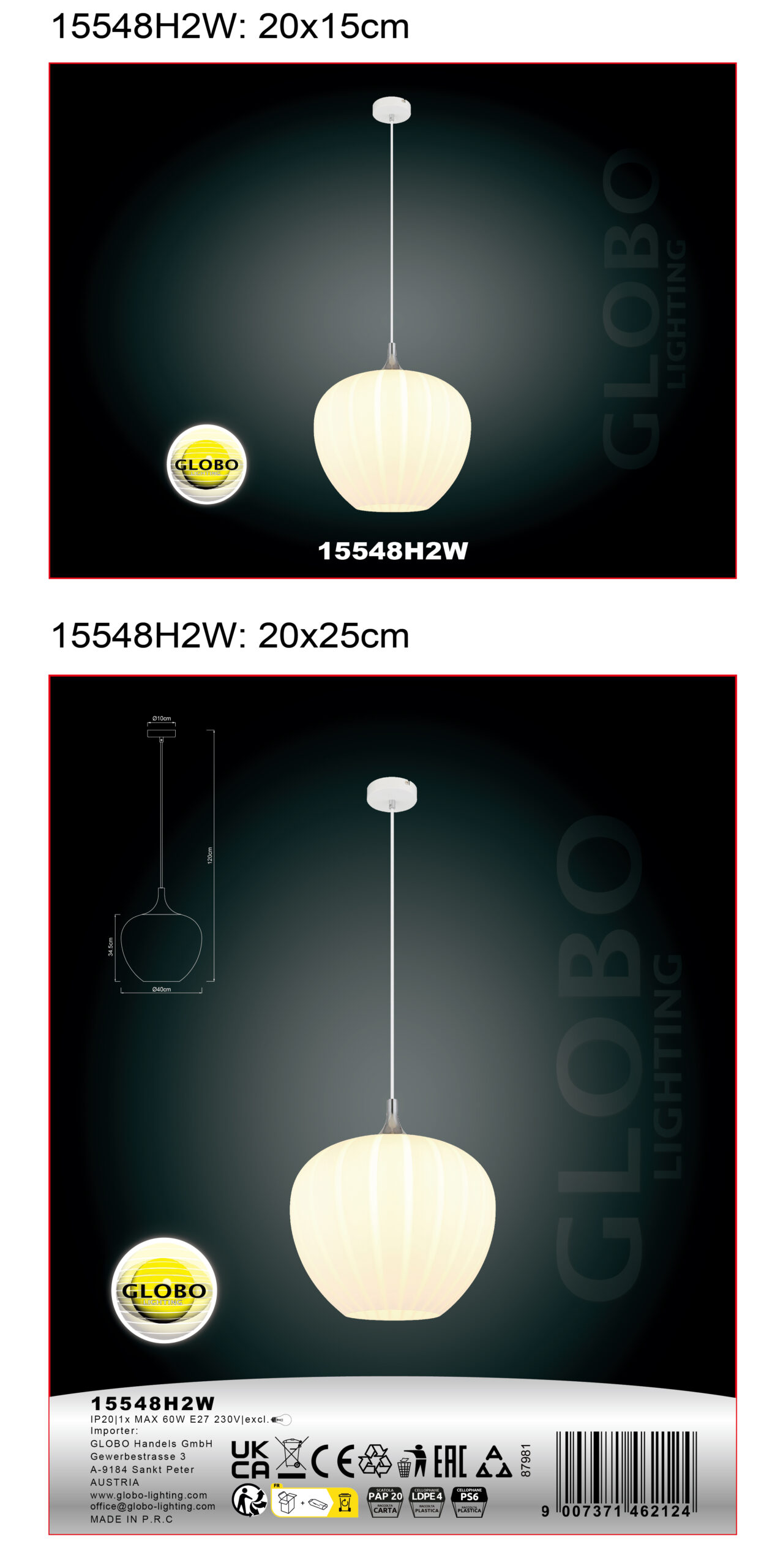 Viseća lampa MAXY je jedinstveno rešenje za osvetljenje koje se ističe zbog svog okruglog oblika i lukovičastog stakla sa žlebovima. Abažur lampe je napravljen od stakla u opalnom i satenskom izgledu, koje je ukrašeno dekorativnim žlebovima. Telo lampe je napravljeno od belog, mat metala i nudi elegantan kontrastni efekat u odnosu na hromirani metal naslona za ruke. Viseća lampa MAXY je energetski štedljivo i moderno rešenje za vaše osvetljenje i idealna je za moderne dnevne sobe, kancelarije i druge prostorije. Sa svojim vekom trajanja od sat vremena i jednostavnom instalacijom, viseća lampa MAXY je sigurna investicija za vašu budućnost. Naručite viseća lampu MAXY danas i dizajnirajte svoj dom ili kancelariju jedinstvenim rešenjem za osvetljenje!