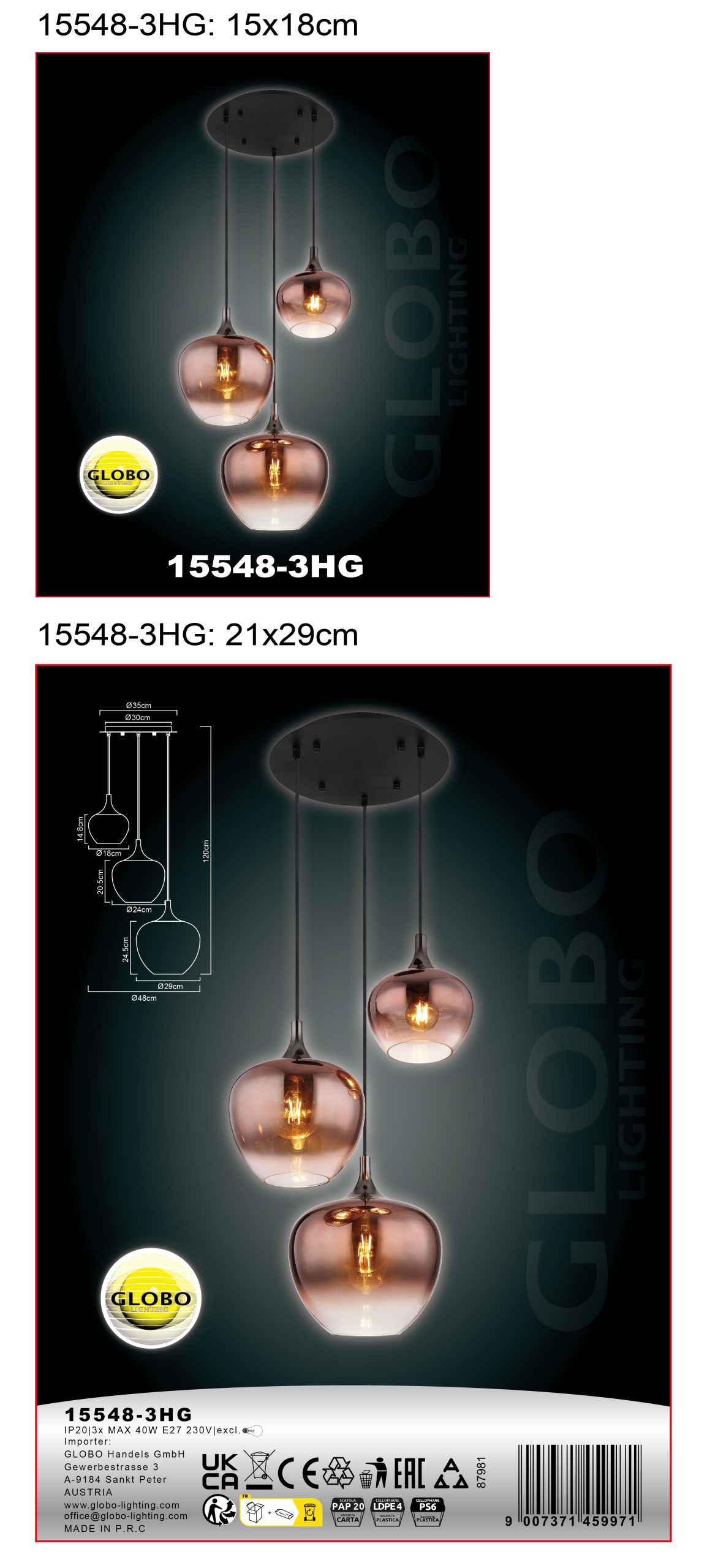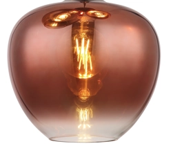 Viseća lampa MAXY impresionira svojim okruglim dizajnom i tri viseća, lukovičasta stakla, koja su prava atrakcija u svakoj prostoriji. Telo, napravljeno od crnog mat i crnog hromiranog metala, daje lampi moderan i elegantan izgled. Abažuri od stakla boje bakra imaju jasan i gradijentni dizajn, što stvara posebnu atmosferu osvetljenja. Sa prečnikom od 480 mm, viseća lampa emituje prijatno, toplo svetlo i stvara ugodnu atmosferu u prostoriji. Viseća svetiljka MAXY nije samo funkcionalna, već i dekorativni element u vašem domu. Svojim stilskim dizajnom i visokokvalitetnom izradom, ova svetiljka postavlja moderne akcente u vaš enterijer i obezbeđuje harmonično osvetljenje u prostoriji.