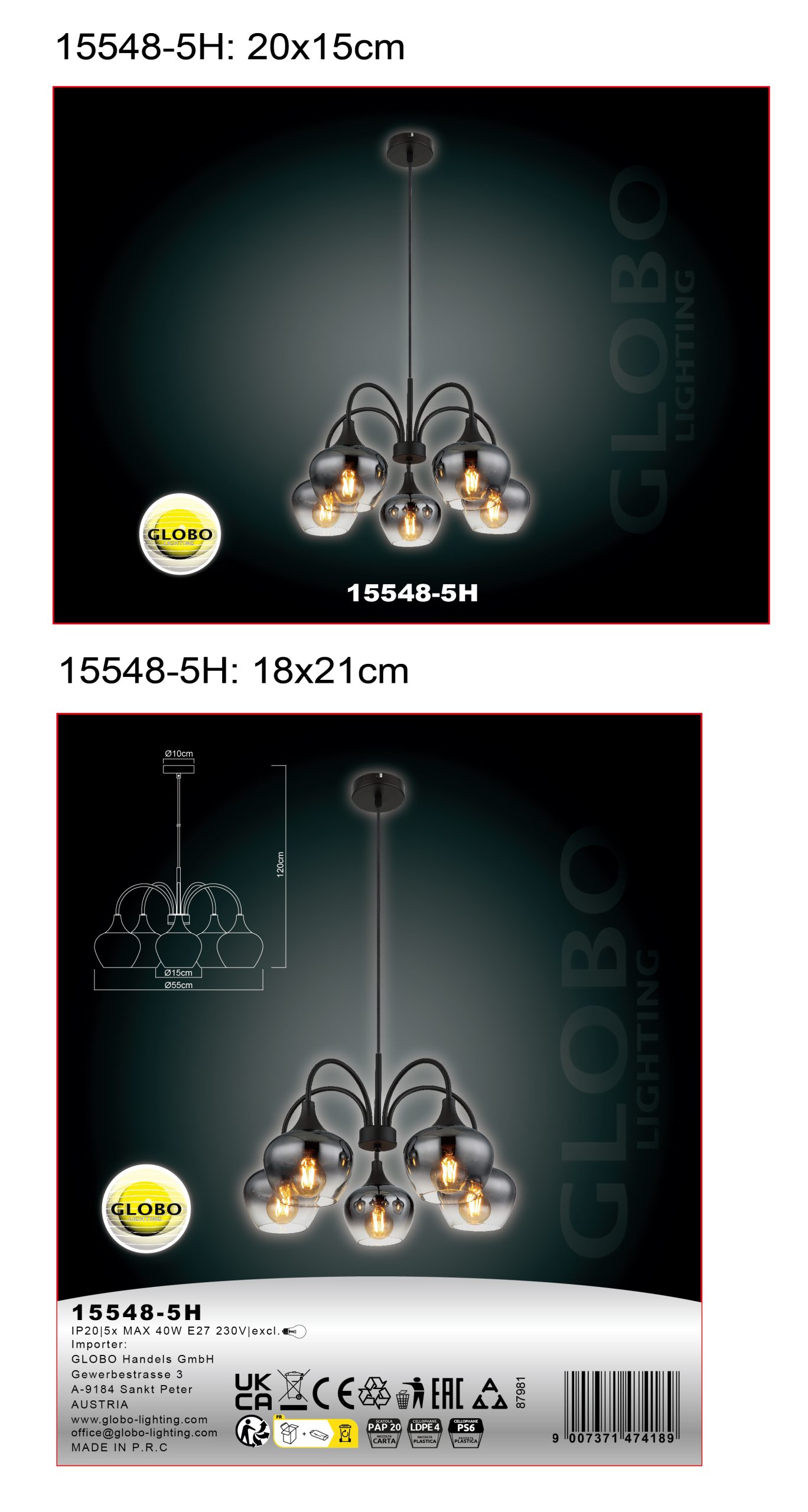 Otkrijte viseću lampu MAXY, jedinstvenu viseću lampu koja se ističe svojim okruglim oblikom i pet zakrivljenih krakova. Pet lukovicastih sočiva opremljeno je dimljenim i providnim vizirarom koji se proteže duž krakova. Telo lampe je napravljeno od crnog mat metala, što joj daje moderan i elegantan oblik. Viseća lampa MAXY nudi jedinstveno rešenje za osvetljenje koje je idealno za moderne životne prostore, kancelarije i druge prostore. Sa svojom energetski efikasnom tehnologijom i vekom trajanja od sat vremena, viseća lampa MAXY je sigurna investicija za vašu budućnost. Istaknite se stilom i elegancijom uz ovu impresivnu viseću lampu – naručite viseću lampu MAXY već danas!