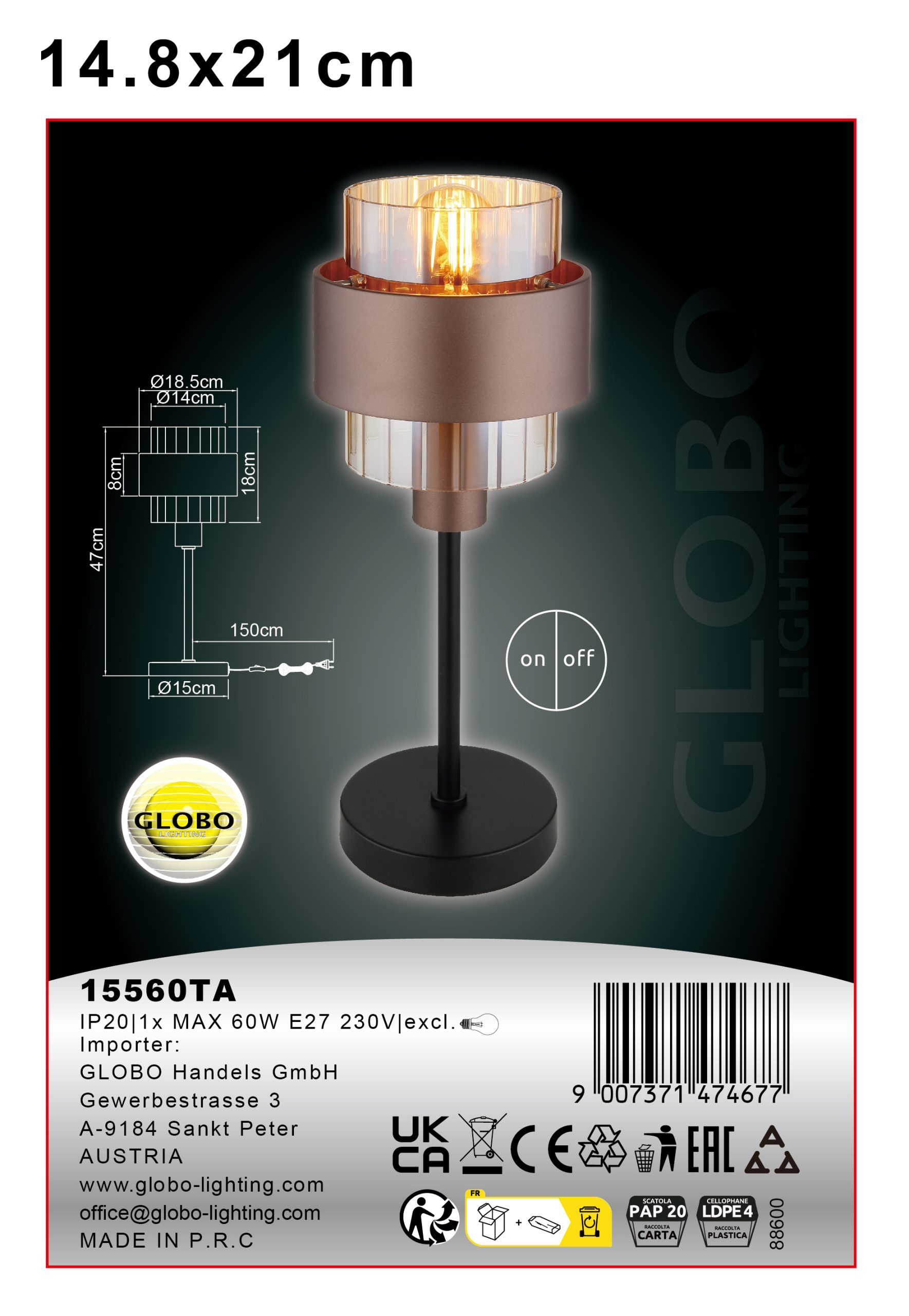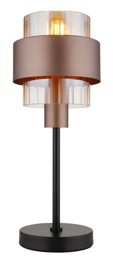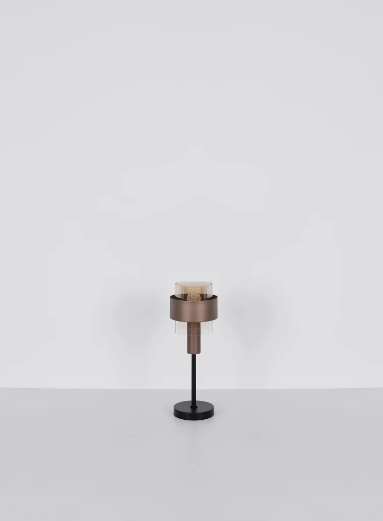 Stona lampa MILLEY je stilski i elegantno dizajniran dodatak za vaš sto. Okrugli oblik ove lampe formiran je staklom okruženim bronzanim prstenom. Bronzani prsten daje lampi dašak luksuza i elegancije. Krivina lampe stvara meku i harmoničnu siluetu koja savršeno izgleda na vašem stolu. Stona lampa MILLEY je viseća lampa koja se ističe svojim elegantnim dizajnom i fleksibilnim mogućnostima instalacije. Telo je napravljeno od metala u mat crnoj završnoj obradi, dok je abažur napravljen od stakla u toploj ćilibarnoj boji i providnom, gradijentnom premazu. Metalni prsten oko abažura je napravljen u bronzanom oknu. Prekidač na kablu vam omogućava da je koristite lako i intuitivno.