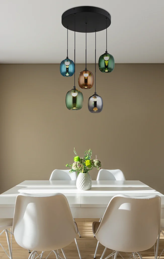 Viseća lampa MINARA je prava atrakcija i kombinuje moderan dizajn sa inovativnom funkcionalnošću. Napravljena od mat crnog metala i satenskog akrila, pruža stilsko osvetljenje. Sa različitim bojama stakla – tamnozelenom, dimljenom, plavom, svetlozelenom i narandžastom – možete prilagoditi raspoloženje u prostoriji. Funkcija memorije i mogućnost kontrole osvetljenosti u tri nivoa pomoću zidnog prekidača (100%, 50%, 10%) pružaju dodatnu praktičnost. Sa prečnikom od 430 mm i visinom od 1500 mm, MINARA je idealna za visoke prostorije. Integrisana LED dioda snage 27W pruža izvor svetlosti od 3300 lm na temperaturi boje od 3000 K, stvarajući prijatnu atmosferu.