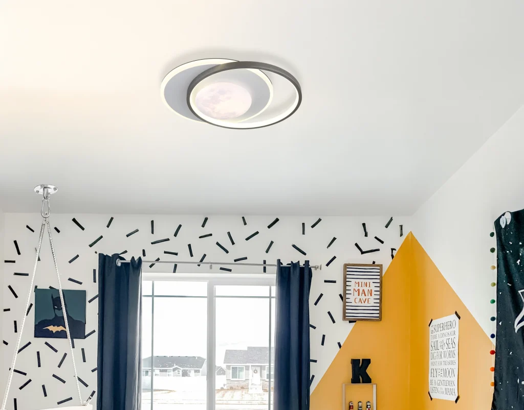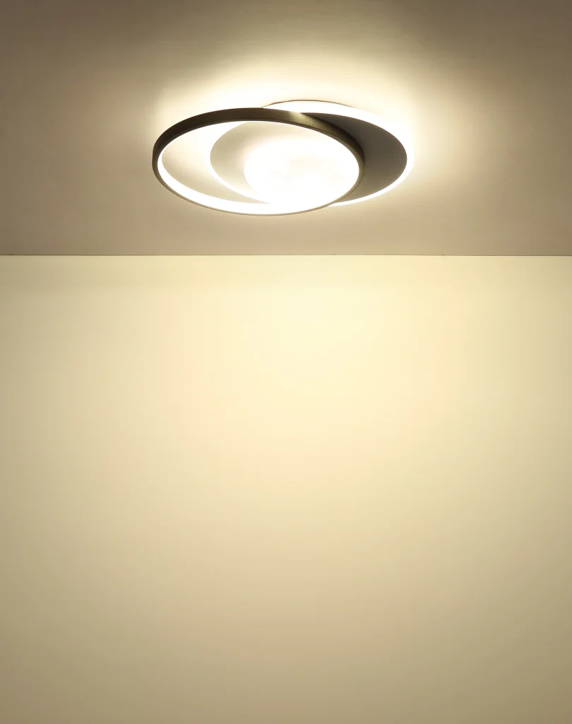 Plafonska lampa MOON METAL BLACK MATT je izuzetan dizajnerski komad koji obogaćuje vaš dom modernim šarmom. Pravougaona lampa impresionira sa dva prstena i zapanjujućim 3D mesecom u sredini, koji deluje kao stilski centar pažnje. Telo napravljeno od mat crne i brušenog aluminijuma u sivoj boji daje lampi elegantan, moderan izgled. Opalni akrilni abažur i beli plastični i silikonski elementi obezbeđuju ravnomernu raspodelu svetlosti. Sa svetlosnim izlazom od 2200 lumena i prijatnom temperaturom boje od 4000 K, lampa nudi dovoljnu osvetljenost za svaku prostoriju. Integrisana LED tehnologija obezbeđuje energetsku efikasnost i dug vek trajanja. Idealna za dnevne sobe, hodnike ili kao impresivan dodatak u vašoj sobi. Ova plafonska lampa je stilski i funkcionalan element koji impresionira svojim jedinstvenim oblikom i svetlosnim efektima.