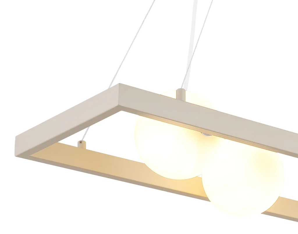 Pravougaona viseća lampa NANDA kombinuje klasičan dizajn sa modernim akcentima. Njen mat metalni okvir boje peska elegantno obuhvata niz lopti od opalnog stakla raspoređenih unutra. Lopte od opalnog stakla emituju meko, ravnomerno osvetljenje koje stvara toplu, privlačnu atmosferu. Sa dužinom od 840 mm i širinom od 240 mm, NANDA je savršena za trpezarije, otvorene dnevne prostore ili stilske hodnike. Kao deo serije „Tradicionalna svetla“, spaja bezvremenski dizajnerski jezik sa visokokvalitetnom izradom. G9 grla (sijalice nisu uključene) nude fleksibilnost u izboru boje i intenziteta svetlosti. Sa svojim čistim linijama i upečatljivim kontrastom materijala, NANDA je istovremeno nenametljiva i ekspresivna. Bilo da je postavljena iznad trpezarijskog stola ili kao centralni element osvetljenja u prostoriji – ova viseća lampa dodaje elegantne akcente uz divnu igru svetlosti.