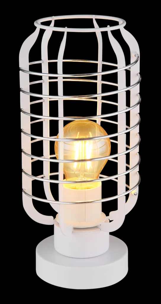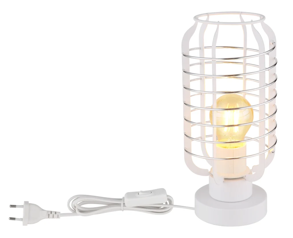 Stona lampa NESA  impresionira svojim modernim i elegantnim dizajnom. Cilindrični abažur napravljen od mat metalnih šipki u beloj boji daje lampi minimalistički, ali upečatljiv izgled koji se savršeno uklapa u savremene životne prostore. Hromirane aluminijumske šipke dodaju sjajne akcente i obezbeđuju stilski odsjaj svetlosti. Telo napravljeno od visokokvalitetnog, mat belog metala obezbeđuje jednostavnu, ali elegantnu estetiku. Sa E27 grlom (bez sijalica), stona lampa se može individualno podesiti po potrebi. Praktični prekidač na kablu omogućava lako rukovanje i pruža dodatnu udobnost. NESA  je idealna kao akcentno osvetljenje na komodama, noćnim stočićima ili policama i stvara prijatnu atmosferu. Ova stona lampa je idealan izbor za svakoga ko ceni moderan dizajn i funkcionalnu eleganciju. Stilan vrhunac za svaki dom.