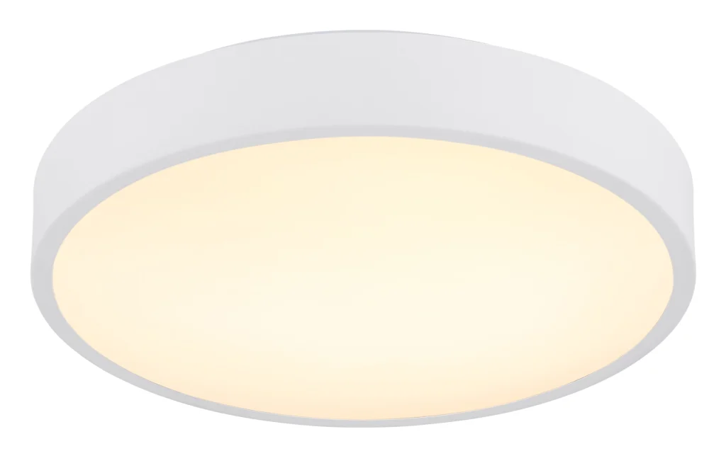 Plafonska lampa NIELSEN impresionira modernim dizajnom i praktičnom funkcionalnošću. Sa svojim ravnim, okruglim kućištem od mat belog lakiranog metala, harmonično se uklapa u svaki enterijer. Abažur od mat crne plastike sa opalnim difuzorom obezbeđuje prijatnu, ravnomernu raspodelu svetlosti. Zahvaljujući integrisanom LED modulu, NIELSEN isporučuje 1500 lumena svetlosnog izlaza – efikasno i energetski štedljivo. Boja svetlosti se može podesiti u tri faze pomoću kliznog prekidača u osnovi: od toplo bele (3000 K) do neutralne bele i dnevne bele (6000 K). Nakon izbora, željena temperatura boje se može fiksirati. Sa prečnikom od ø 378 mm, lampa je idealna za dnevne sobe, hodnike ili radne prostore. Njen ravni dizajn je takođe čini savršenom za sobe sa niskim plafonima.
