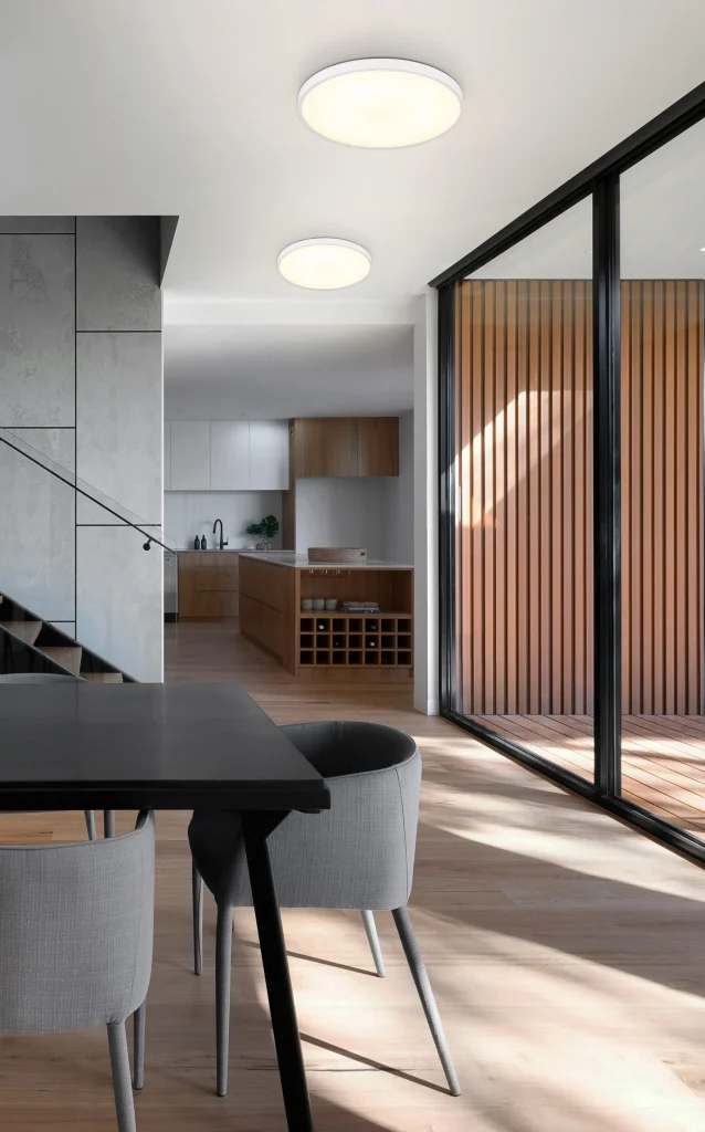 Plafonska lampa NIELSEN je izvanredan primer savremenog, tehničkog dizajna. Sa svojim ravnim, okruglim profilom i prečnikom od 230 mm, bez napora se uklapa u svaki enterijer i daje vašem domu moderan dodir. Telo napravljeno od mat bele plastike obezbeđuje stilski i neupadljiv izgled, dok opalni plastični abažur ravnomerno raspoređuje svetlost i stvara prijatnu atmosferu. Sa impresivnim svetlosnim izlazom od 1350 lumena i temperaturom boje od 4000 Kelvina, NIELSEN pruža efikasno osvetljenje koje izgleda privlačno i u dnevnim sobama i u kancelarijama. Posebno pozadinsko osvetljenje stvara dodatne lepe akcente tako što takođe svetli nagore. Uključujući integrisanu LED tehnologiju, plafonska lampa je ne samo energetski efikasna, već i dugotrajna – savršena za moderne životne prostore!