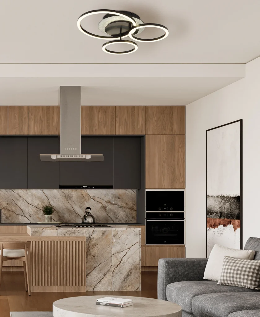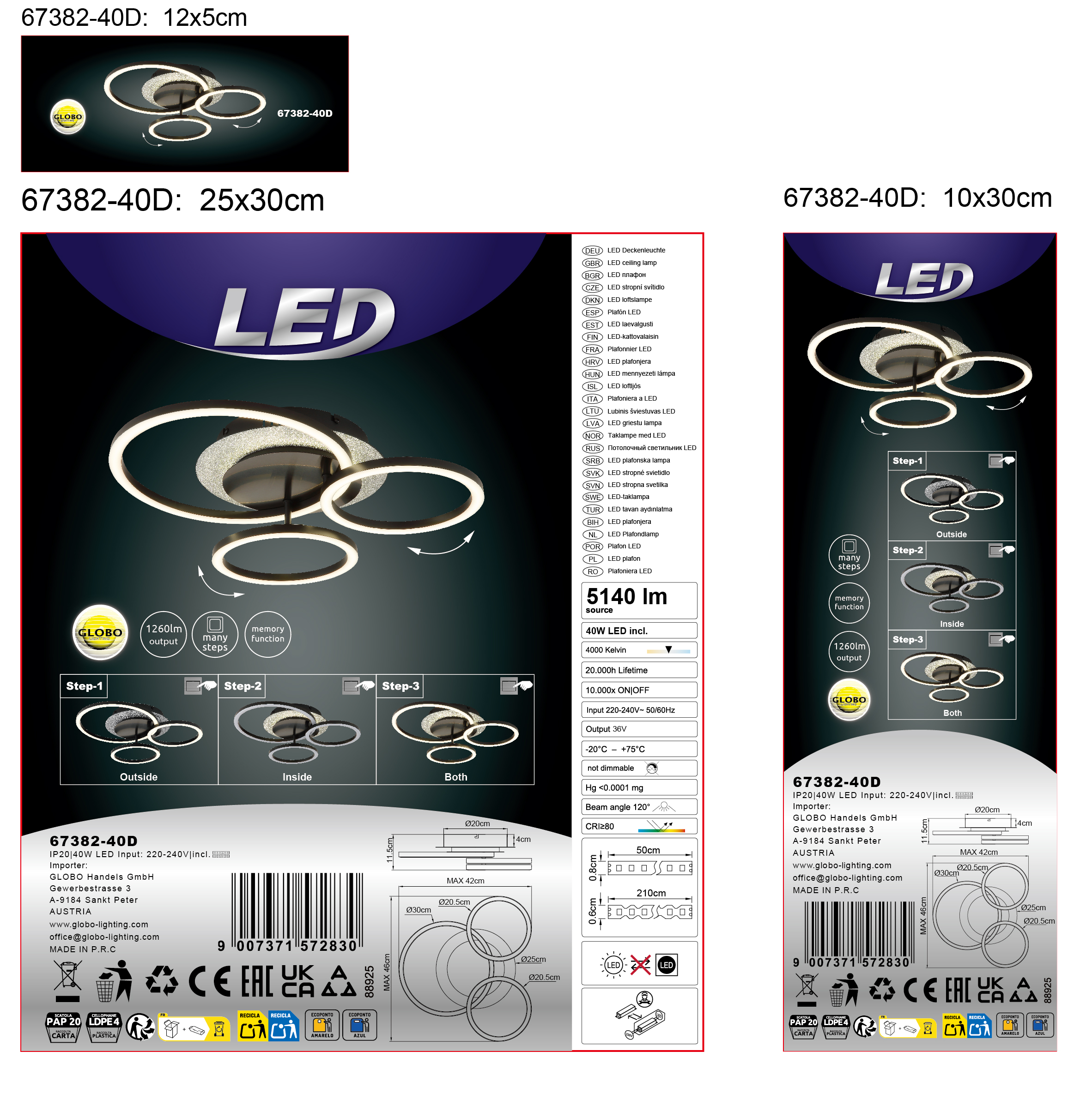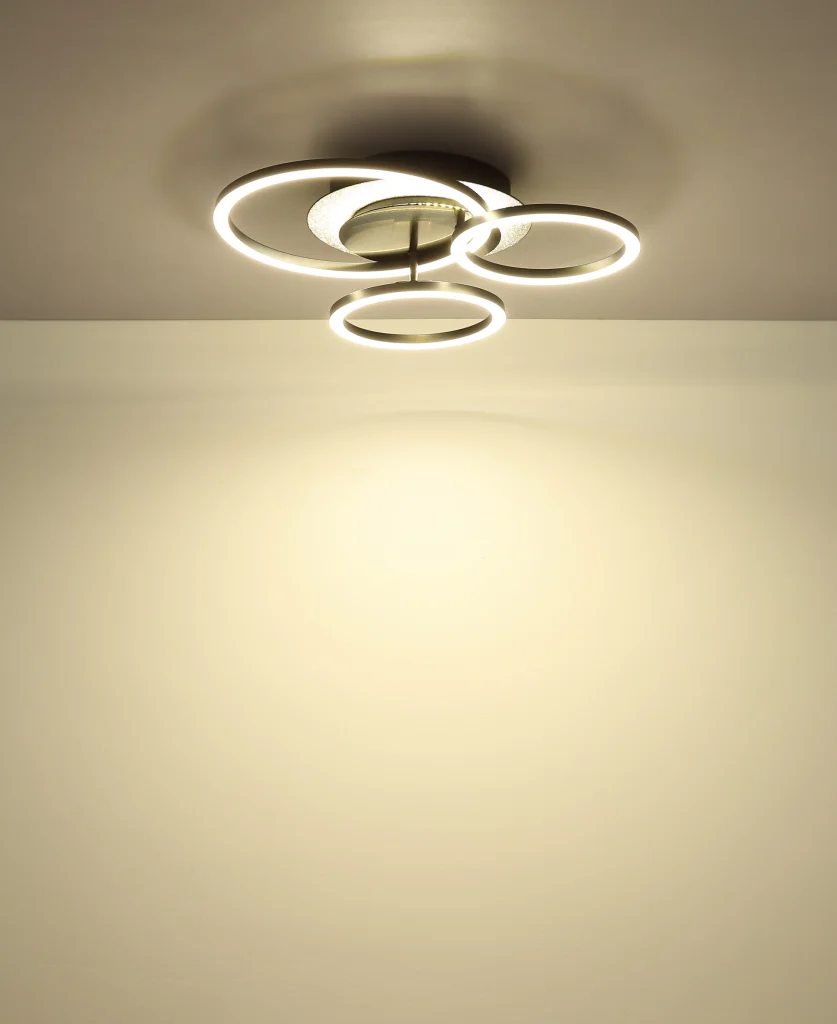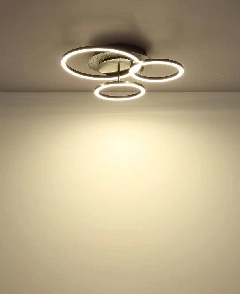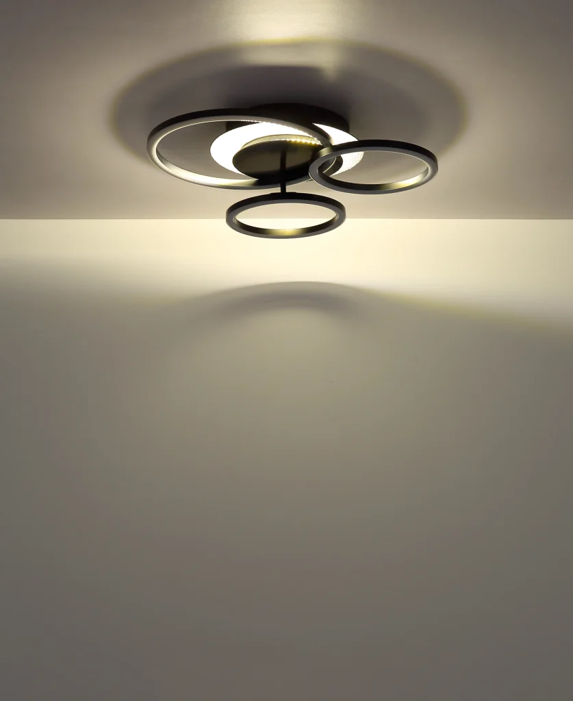 Plafonska svetiljka NORBERTO ističe se svojim upečatljivim, modernim dizajnom: okrugli zidni panel formira osnovu za tri pokretna prstena, stvarajući dinamičan svetlosni efekat. Telo, izrađeno od visokokvalitetnog metala u mat crnoj, sjajnoj srebrnoj i mat crno-hromiranoj boji nerđajućeg čelika, daje svetiljci elegantan, savremen izgled. Kombinacija mat crne plastike i opalno belih difuzora obezbeđuje ravnomernu raspodelu svetlosti bez odsjaja. Sa dimenzijama 460 x 420 mm i snagom od 1260 lumena, NORBERTO pruža prijatno neutralno-belo osvetljenje od 4000 K – savršeno za život ili radne prostore. Mogu se menjati tri režima osvetljenja: samo prstenovi, samo pozadinsko osvetljenje ili oba zajedno. Funkcija memorije čuva vaše poslednje podešavanje za maksimalnu udobnost. Zahvaljujući dugotrajnoj LED tehnologiji, NORBERTO spaja modernu tehnologiju sa stilskim dizajnom – savršeno rešenje za sofisticirane enterijere.