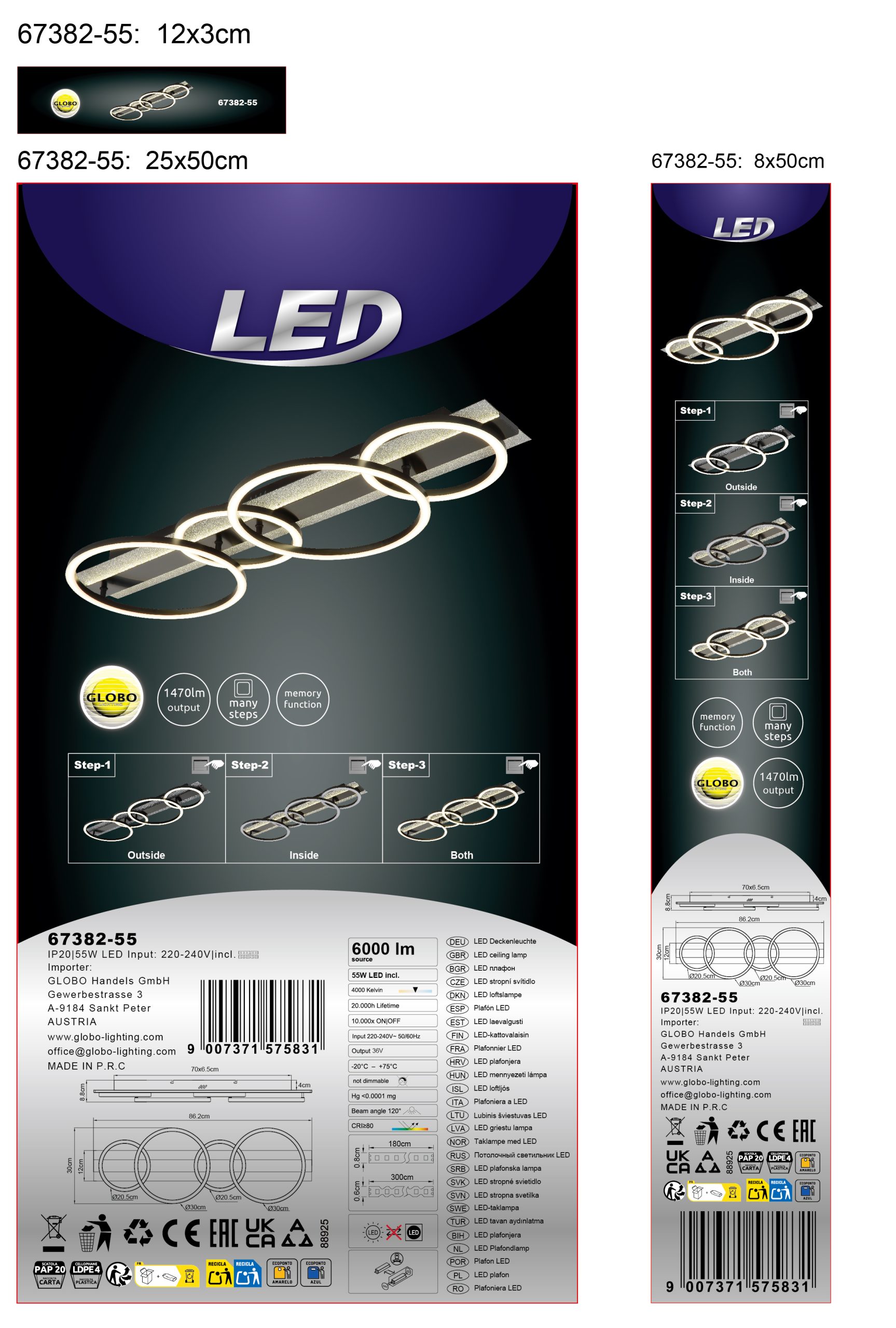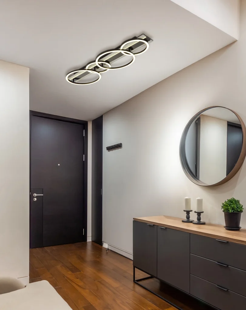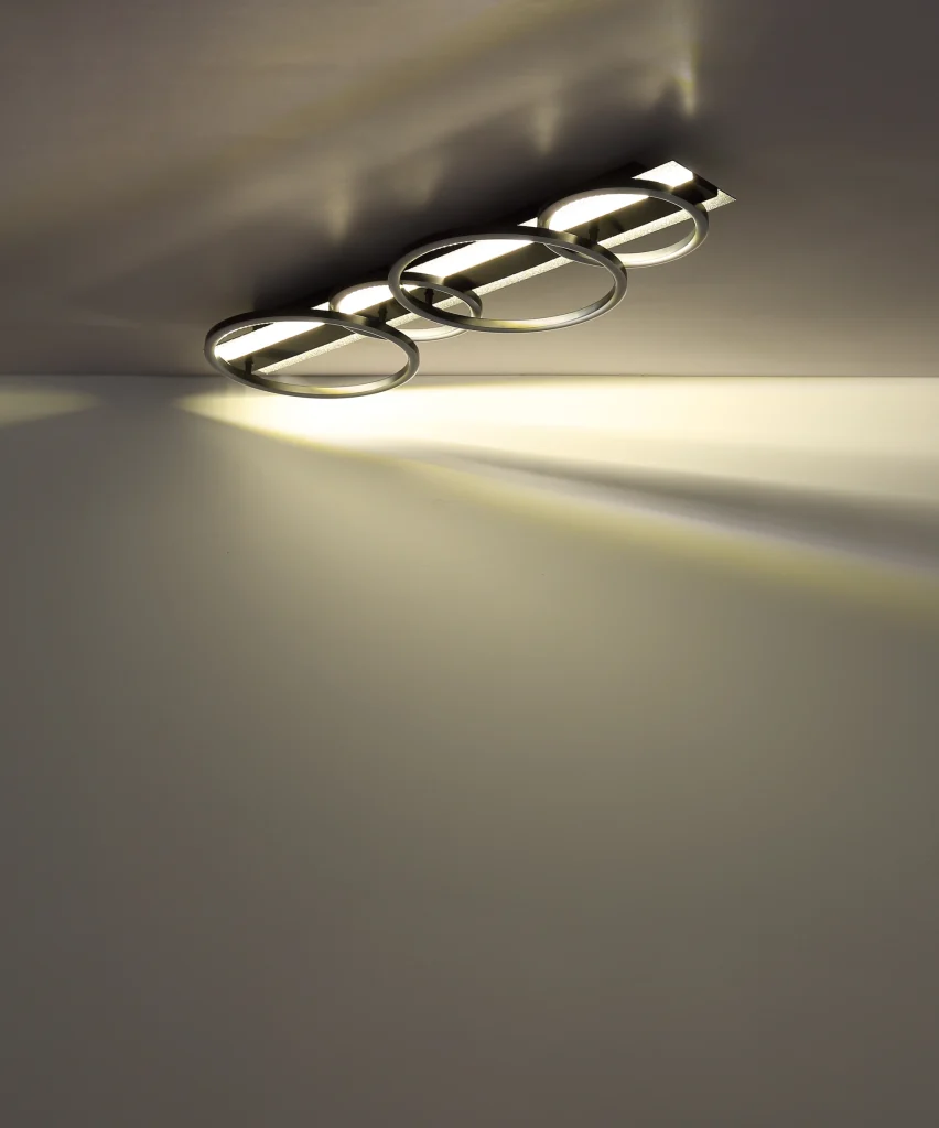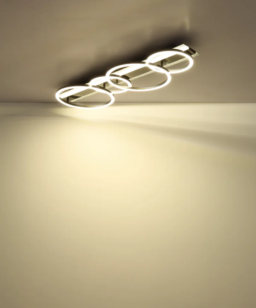 Plafonska svetiljka NORBERTO impresionira svojom modernom, pravougaonom zidnom pločom i četiri naslagana prstena, stvarajući dinamičan i upečatljiv svetlosni efekat. Telo, izrađeno od visokokvalitetnog metala u mat crnoj, sjajnoj srebrnoj i mat crno-hrom boji nerđajućeg čelika, daje svetiljci ekskluzivan, moderan izgled. Abažur kombinuje mat crnu plastiku sa opal-belom plastikom za ravnomerno osvetljenje bez odsjaja. Sa velikodušnim dimenzijama od 862 × 300 mm i svetlosnim snagama od 1470 lumena, NORBERTO pruža neutralno belo svetlo od 4000 K – idealno za životne i radne prostore. Tri režima osvetljenja mogu se odabrati pomoću prekidača: samo prstenovi, samo pozadinsko osvetljenje ili oba zajedno, kako bi odgovarala vašem raspoloženju. Funkcija memorije čuva vaše poslednje podešavanje i vraća ga nakon uključivanja. Ugrađena LED tehnologija obezbeđuje izdržljivost i energetsku efikasnost. Ova svetiljka spaja sofisticiranu tehnologiju sa elegantnim dizajnom – savršen izbor za prefinjene enterijere.