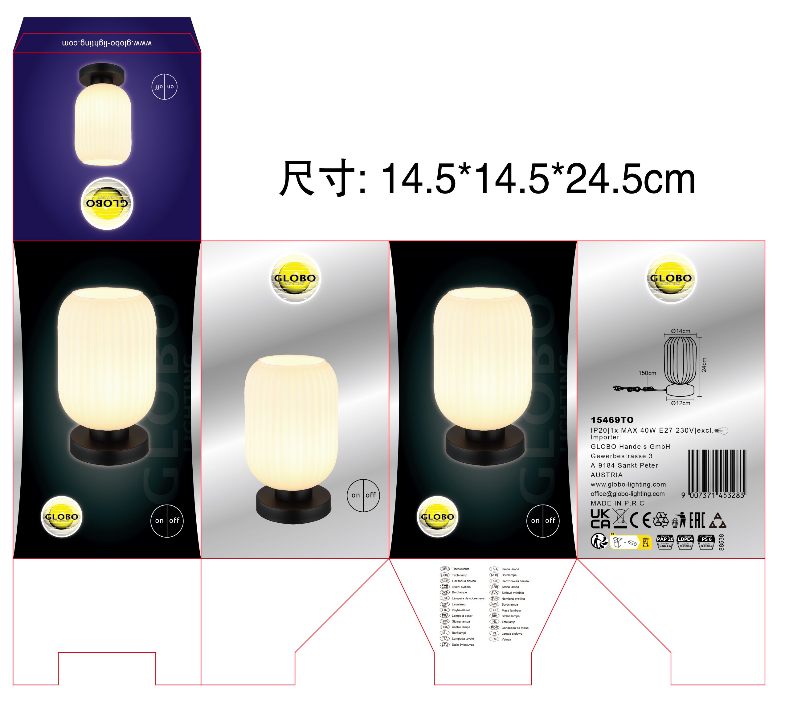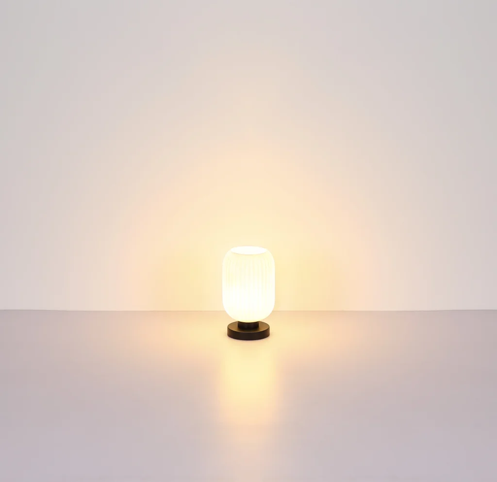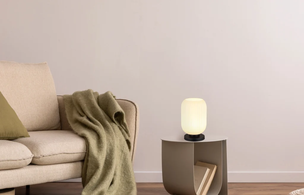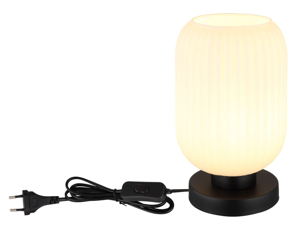 Stona lampa NORMY vešto kombinuje moderan dizajn sa dodatkom vintage šarma. Njeno okruglo, lukovičasto staklo sa elegantnim žlebovima čini je pravom atrakcijom u svakoj prostoriji. Crno mat metalno kućište daje stonoj lampi NORMY stabilnost i elegantan izgled. Abažur je napravljen od opal stakla, koje pruža difuzno i meko osvetljenje. Praktično rukovanje je omogućeno zahvaljujući prekidaču na kablu, koji omogućava praktično uključivanje i isključivanje svetla. Sa prečnikom od 140 mm, stona lampa će pronaći dovoljno mesta na svakom stolu ili bočnom stočiću. Stvorite ugodnu atmosferu u svom domu uz stonu lampu NORMY. Bilo da je u dnevnoj sobi, spavaćoj sobi ili hodniku – ona postavlja stilske akcente i daje svakoj prostoriji jedinstven pečat. Dozvolite sebi da vas inspiriše kombinacija modernog dizajna i vintage šarma i unesite pravi sjaj u svoj dom uz stonu lampu NORMY.