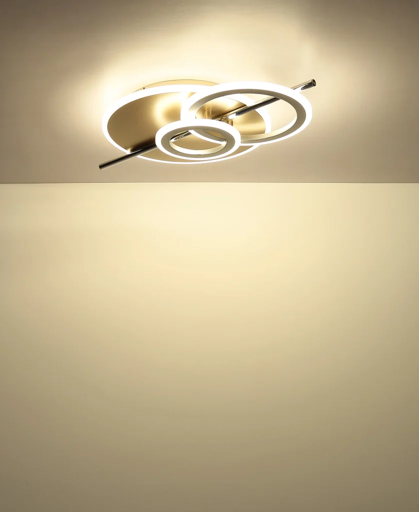 Plafonska lampa NORRIS – elegancija u dizajnu boje šampanjca. Okrugla plafonska lampa NORRIS impresionira svojim modernim i elegantnim izgledom. Njeno telo napravljeno od mat metala boje šampanjca u kombinaciji sa hromiranim nerđajućim čelikom daje svakoj prostoriji stilski dodir. Tri filigranska prstena i centralna šipka pružaju poseban efekat osvetljenja. Abažur napravljen od mat srebrnog metala i opal akrila ravnomerno i bez odsjaja raspoređuje toplu belu svetlost od 3000 K po celoj prostoriji. Sa dimenzijama D: 520 mm, Š: 320 mm, NORRIS se savršeno uklapa u dnevne sobe, trpezarije ili kancelarije. Integrisana LED tehnologija obezbeđuje energetski efikasno i dugotrajno osvetljenje. Stilan izbor za svakoga ko želi da kombinuje moderan dizajn sa visokokvalitetnom izradom.