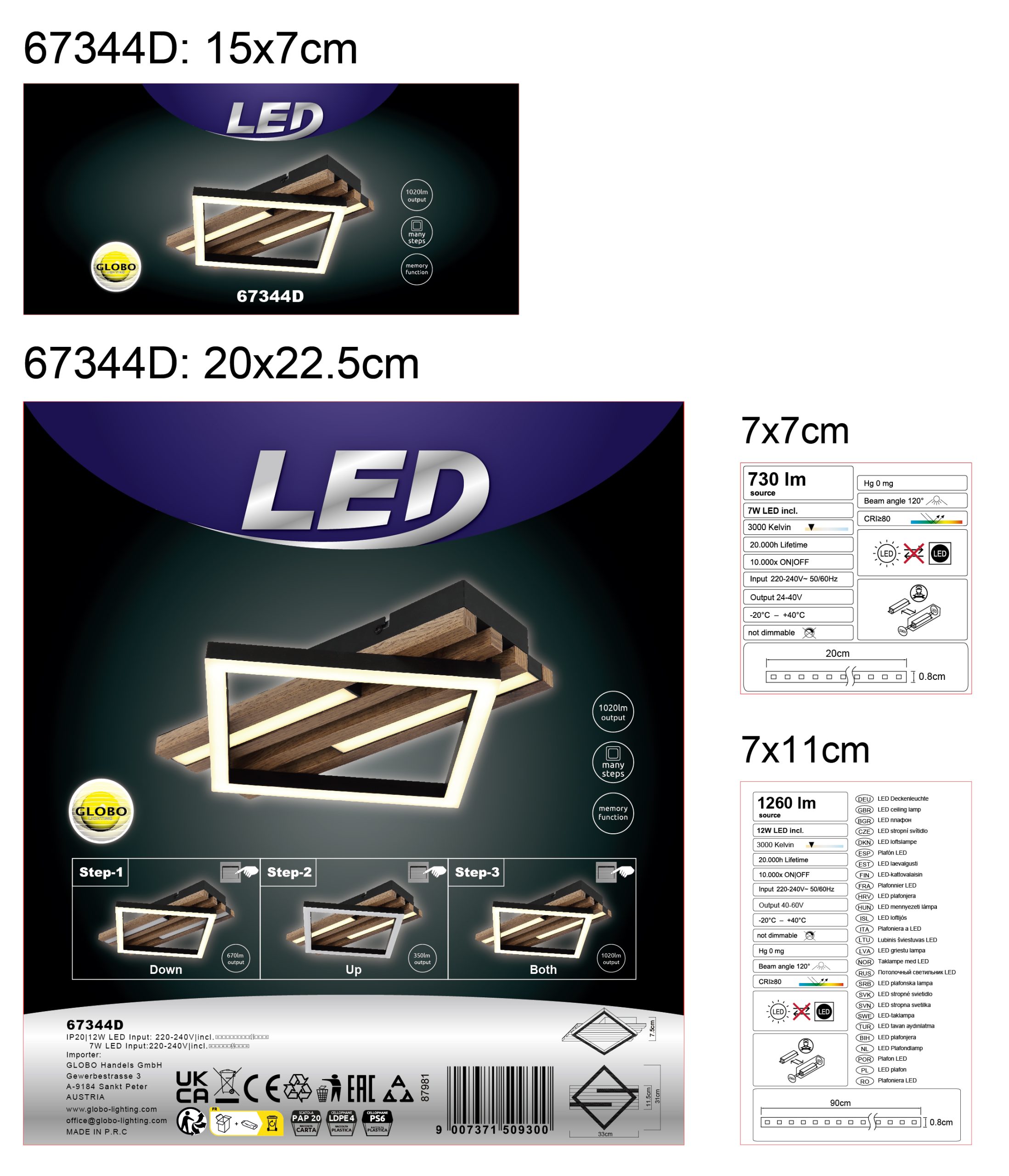 Unesite moderan dizajn i inovativnu funkcionalnost u svoj dom uz plafonsku lampu OBRIEN. Njeno prepoznatljivo, crno metalno kućište sa mat završnom obradom savršeno se kombinuje sa izgledom akustične ploče i tamnim izgledom drveta od MDF-a, dajući vašoj sobi topao i stilski osećaj. Crni plastični okvir i opalni plastični poklopac obezbeđuju ravnomernu raspodelu svetlosti i prijatno osvetljenje. Zahvaljujući integrisanoj LED tehnologiji sa ukupnim izlazom od 1990 lm (izvor) i 1020 lm (izlaz), svetiljka osvetljava vaše sobe prijatnim, toplim belim svetlom od 3000K. Zidni prekidač vam omogućava da prebacujete svetiljku u tri fleksibilna nivoa: samo okvir (670 lm), samo LED diode na panelu (350 lm) ili oba zajedno (1020 lm). Sa praktičnom funkcijom memorije, vaš poslednji izbor svetla se pamti, tako da se uvek možete brzo vratiti na željeno podešavanje. Plafonska lampa OBRIEN kombinuje sofisticirani dizajn, raznovrsna podešavanja osvetljenja i udobno rukovanje – savršeno za svaki moderni dom.