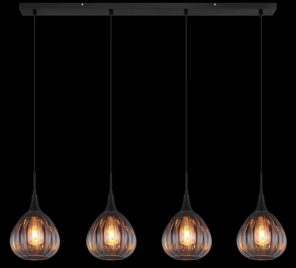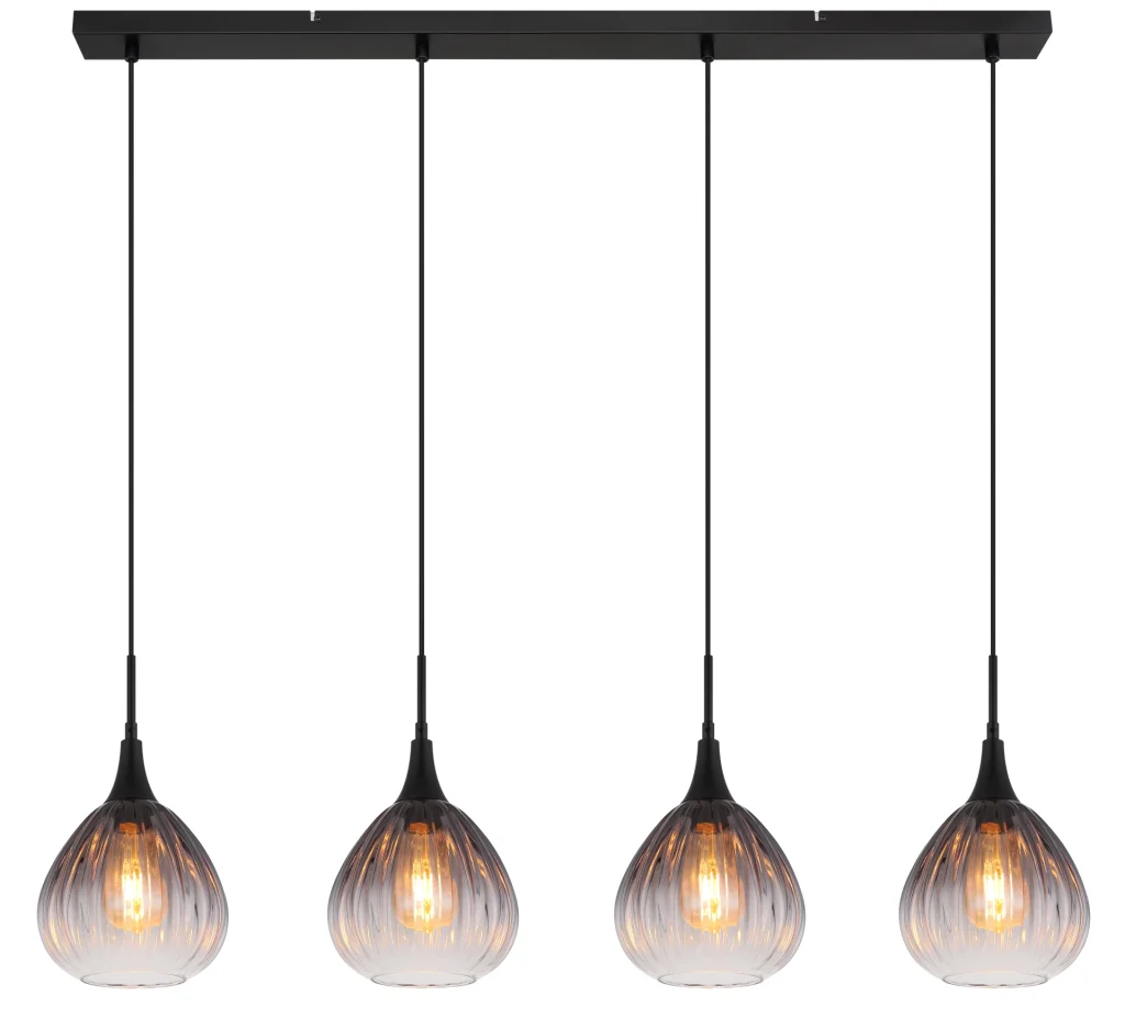 OLSEN je elegantna i moderna viseća lampa koja se savršeno uklapa u bilo koju dekoraciju prostorije. Bukljasta sočiva sa žlebovima daju sijalici elegantan izgled i omogućavaju homogenu raspodelu svetlosti. Izduženje šine omogućava fleksibilno prilagođavanje vašim potrebama. Telo je napravljeno od mat crnog metala, dok je stakleni abažur dimljen, proziran i gradijentan. Upotreba dimljenog stakla daje sijalici posebnu atmosferu i toplo osvetljenje. Šina je opremljena sa 4 vešalice kako bi se osigurala stabilna i bezbedna instalacija.