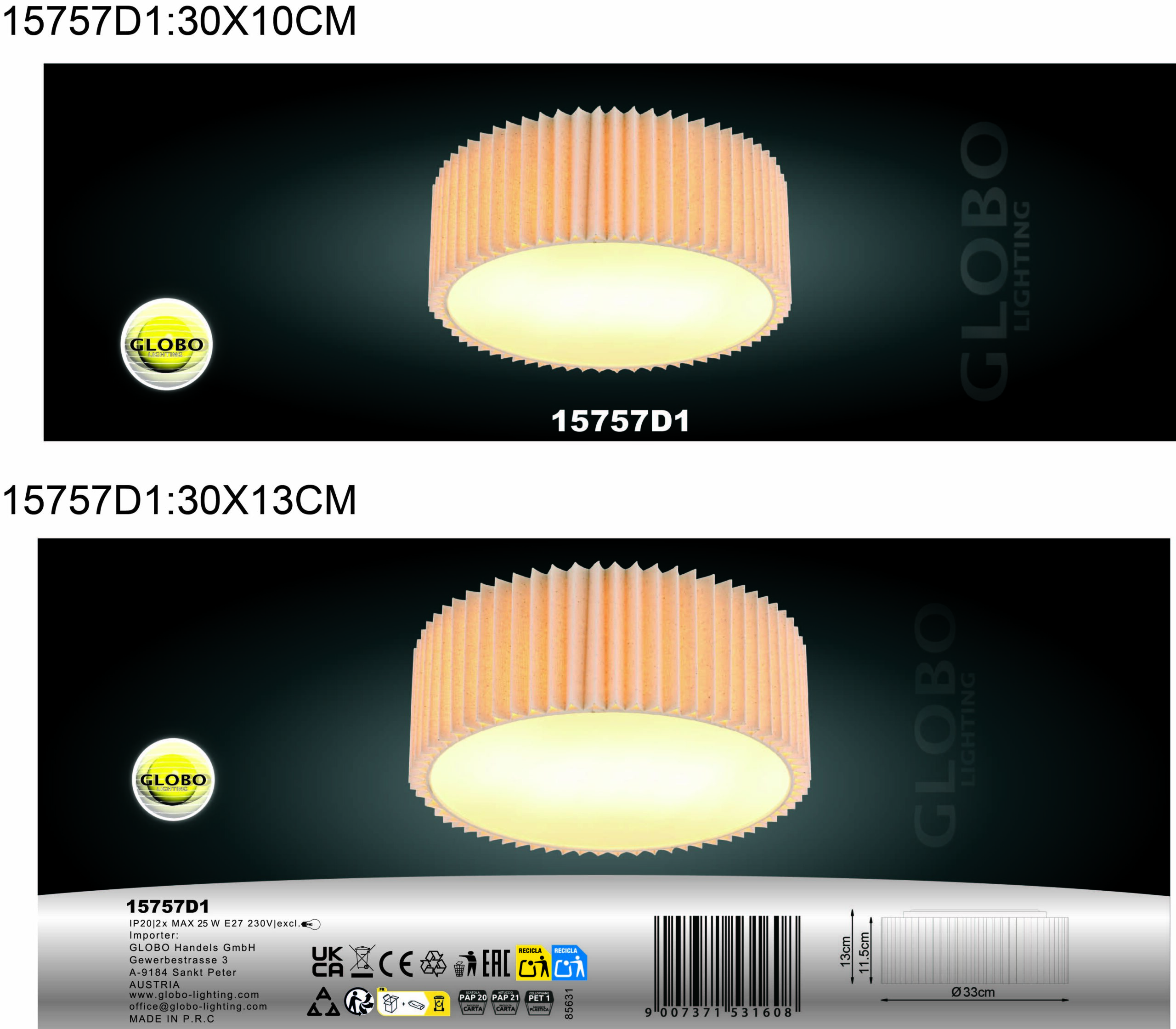 Plafonska lampa PAGE kombinuje tradicionalni dizajn sa modernim izgledom. Njeno okruglo telo od mat belog metala savršeno se usklađuje sa abažurom od tekstila prirodne boje, koji stvara elegantnu teksturu kroz nežne nabore. Abažur od opal plastike obezbeđuje ravnomernu i prijatnu raspodelu svetlosti, kupajući prostoriju toplom, privlačnom svetlošću. Sa prečnikom od 330 mm, ova lampa je idealna za male do srednje velike prostorije kao što su dnevne sobe, hodnici ili spavaće sobe. Plafonska lampa PAGE je opremljena grlom E27 tako da je možete opremiti LED ili štedljivom lampom po vašem izboru. Ova lampa kombinuje funkcionalno osvetljenje sa klasičnim šarmom i stvara prijatnu atmosferu u vašem domu. Savršena je za svakoga ko želi da kombinuje tradicionalni dizajn sa modernim preokretom.