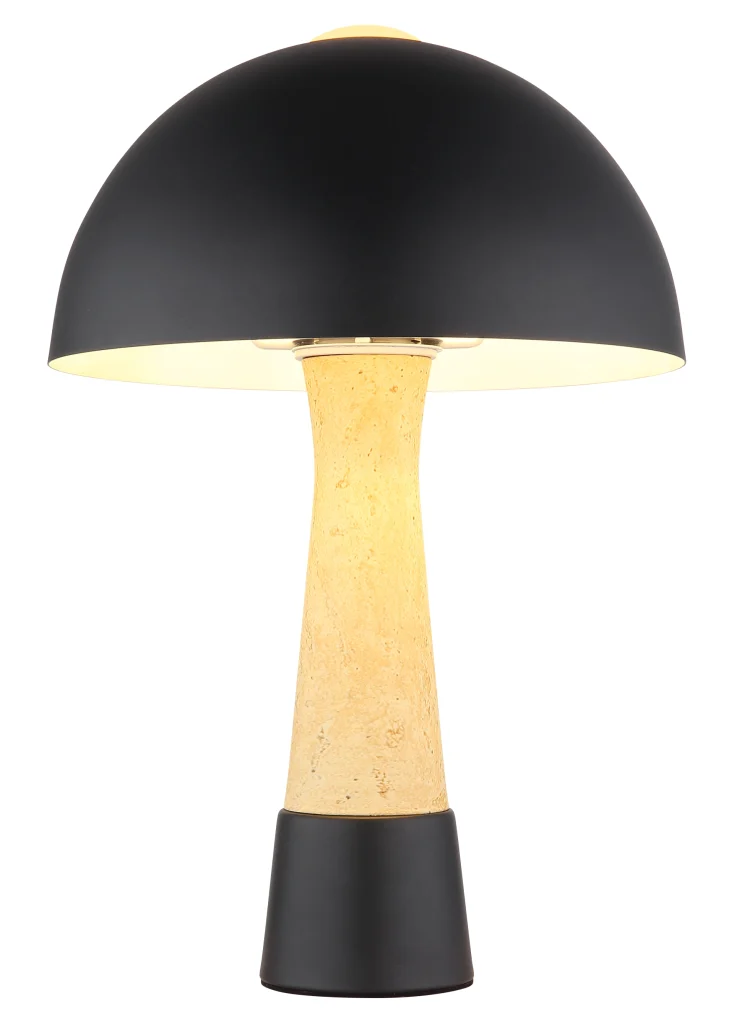 Sa svojim skulpturalnim oblikom pečurke i prefinjenom kombinacijom materijala, stona lampa PAULIN postaje stilska fokusna tačka u svakoj prostoriji. Okruglo telo od mat crnog metala u kombinaciji sa elegantnim detaljima koji podsećaju na travertin daje lampi moderan, ali prirodan karakter. Njen odgovarajući mat crni metalni abažur upotpunjuje dizajn i baca mekan, usmeren sjaj. Sa prečnikom od 250 mm, PAULIN se savršeno uklapa na bočne stočiće, noćne stočiće ili konzole i dodaje suptilne stilske akcente. Praktično se upravlja pomoću prekidača na kablu, a poseduje E27 grlo (sijalica nije uključena) za maksimalnu fleksibilnost u izboru izvora svetlosti – topla ili neutralna bela, prilagođena vašem raspoloženju. Bilo da se koristi kao radno osvetljenje ili kao dekorativno akcentno osvetljenje – PAULIN besprekorno spaja estetiku i svakodnevnu praktičnost.
