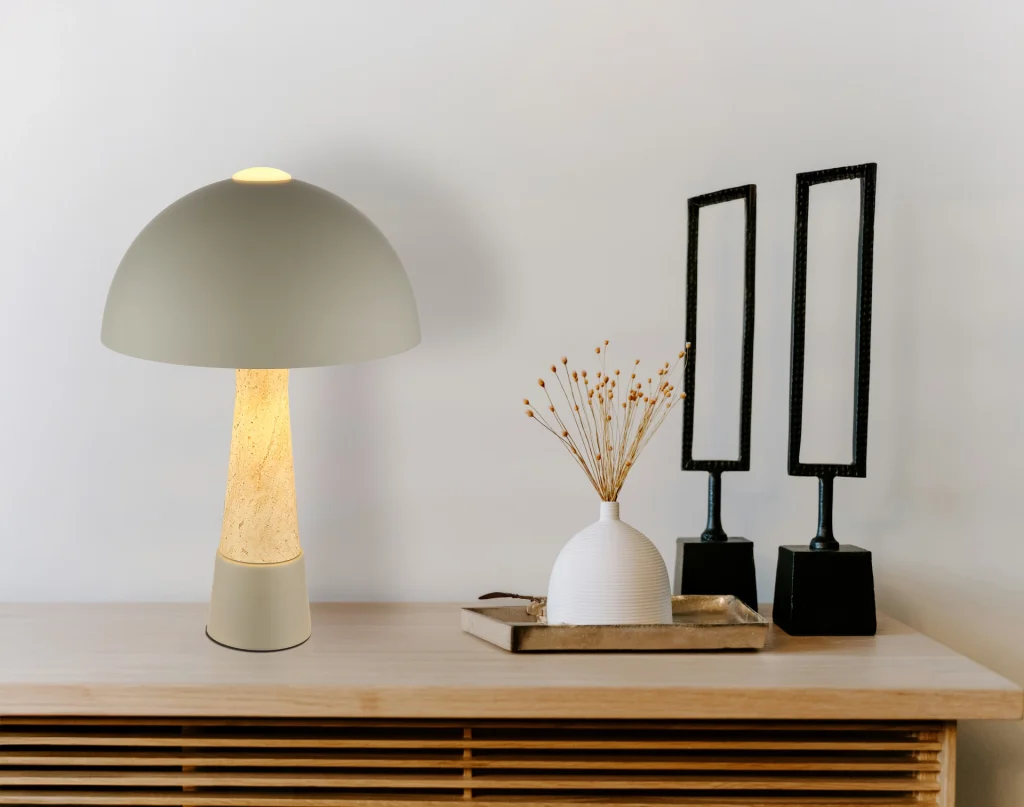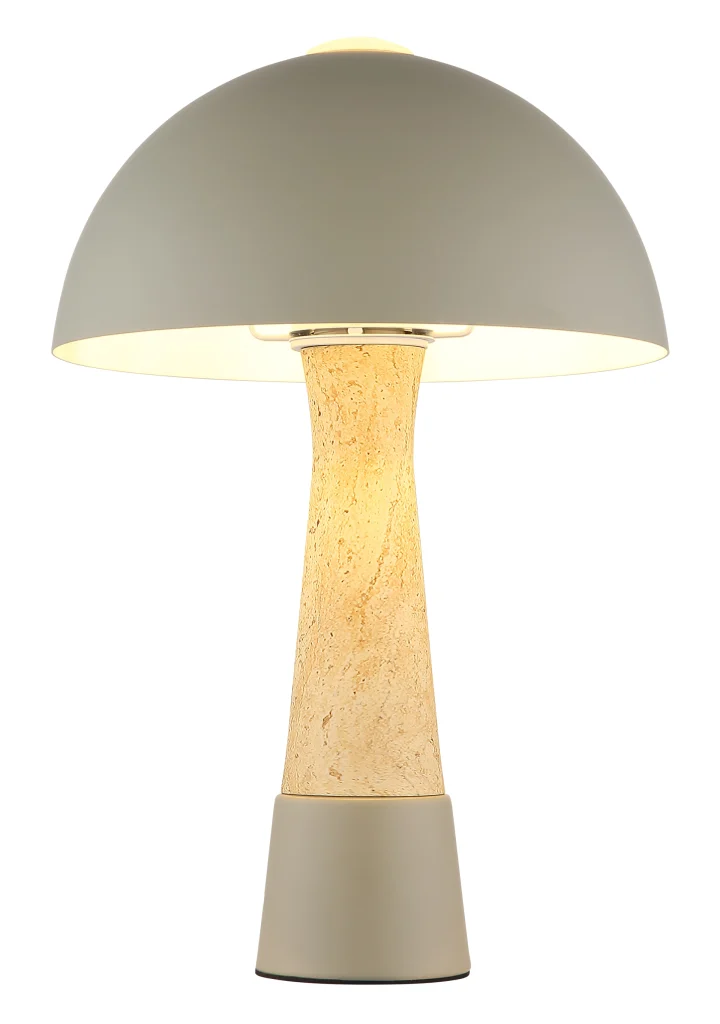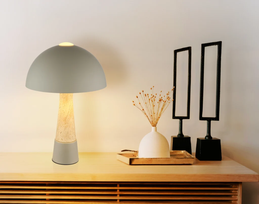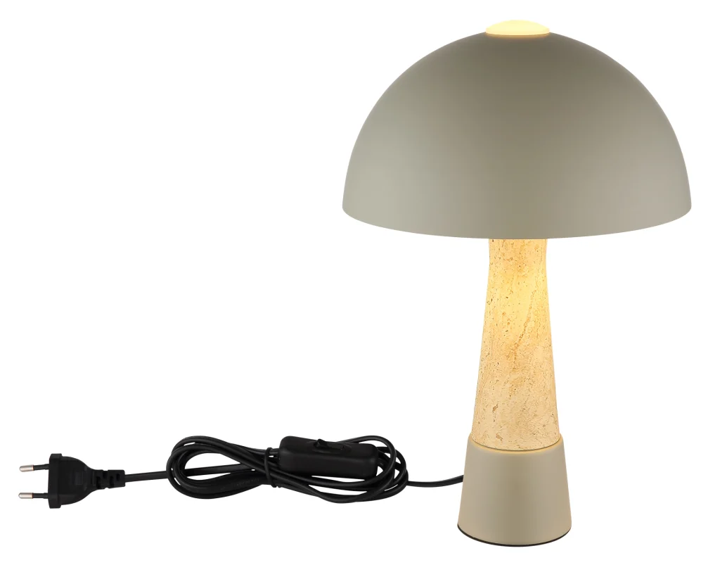 Okrugla stona lampa PAULIN impresionira svojim prepoznatljivim oblikom pečurke i elegantnom kombinacijom mat sivog metala i završne obrade koja podseća na travertin. Okrugli mat sivi metalni abažur savršeno dopunjuje čvrsto telo, dajući lampi moderan, ali bezvremenski izgled. Sa prečnikom od 250 mm, PAULIN je idealna za stolove, bočne stočiće ili noćne stočiće, dodajući stilske akcente gde god da se postavi. Prekidač na kablu omogućava praktično i jednostavno rukovanje bez saginjanja. Opremljena grlom E27 (sijalica nije uključena), lampa nudi maksimalnu fleksibilnost u izboru savršenog izvora svetlosti – bilo da je to topla ili neutralna bela svetlost, prilagođena vašim potrebama. Visokokvalitetna izrada i njen prepoznatljiv dizajn čine PAULIN posebnim akcentom u svakom modernom enterijeru. Bilo da je to radna lampa ili ambijentalni dodatak, PAULIN savršeno kombinuje funkcionalnost i estetiku.