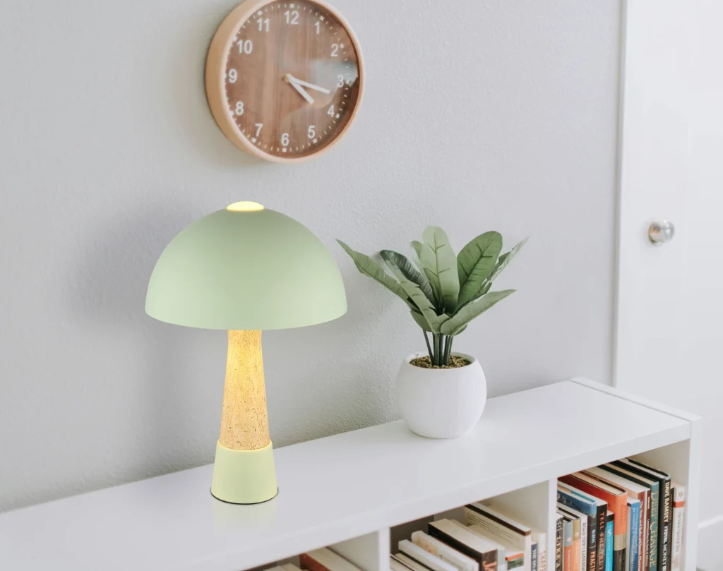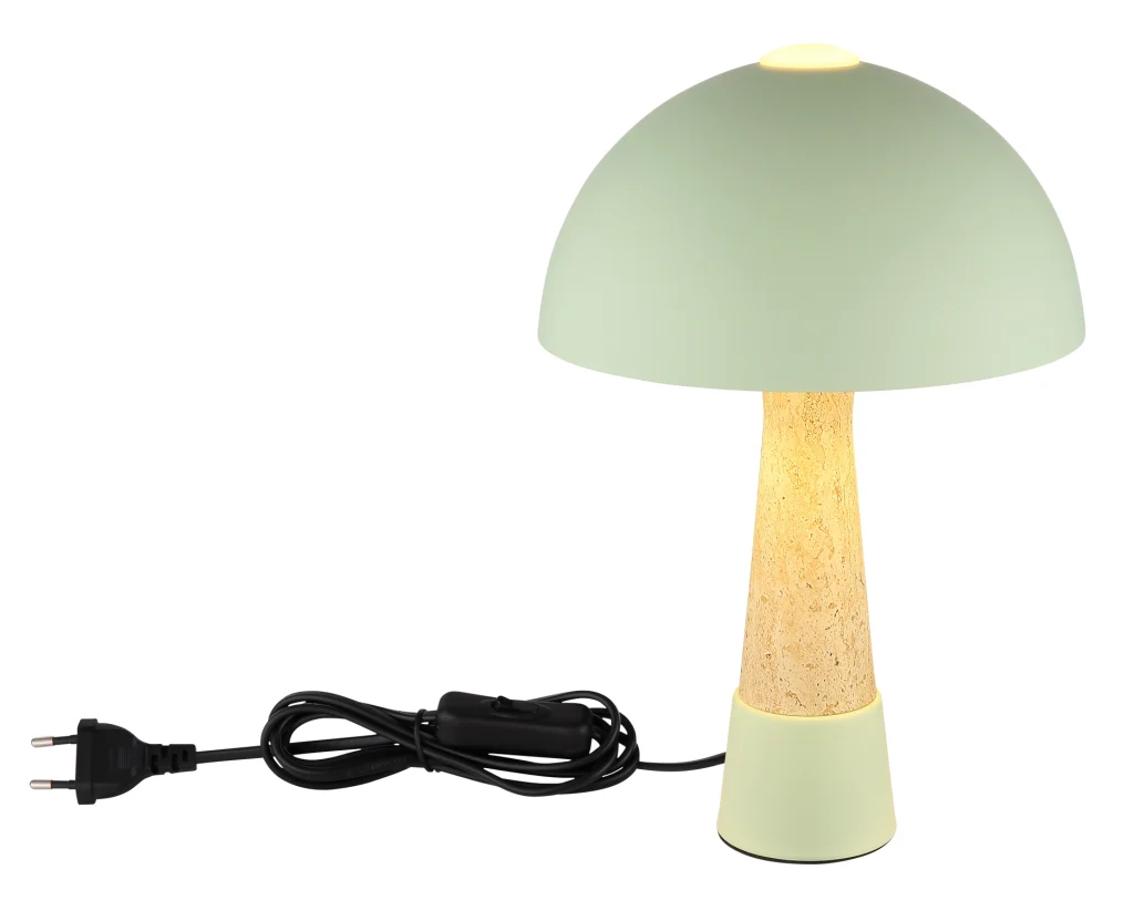 Okrugla stona lampa PAULIN impresionira svojim prepoznatljivim oblikom pečurke i harmoničnom kombinacijom boja mat zelene i travertin izgleda. Okruglo, mat zeleno metalno kućište stilski se stapa sa podjednako mat zelenim metalnim abažurom, dajući lampi moderan, ali prirodan izgled. Sa prečnikom od 250 mm, PAULIN je idealna za stolove, noćne stočiće ili bočne stočiće, stvarajući ugodnu atmosferu. Praktični prekidač na kablu omogućava lako i udobno rukovanje. Opremljena grlom E27 (sijalica nije uključena), PAULIN nudi maksimalnu fleksibilnost u izboru pravog izvora svetlosti — bilo da je to topla ili neutralna bela, u zavisnosti od ličnih preferencija. Visokokvalitetna izrada i jedinstveni dizajn čine PAULIN stilskim akcentom u svakoj prostoriji. Bilo da se radi o radnom osvetljenju ili udobnom akcentnom osvetljenju — PAULIN savršeno kombinuje funkcionalnost i estetiku.