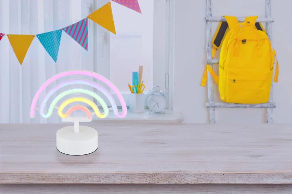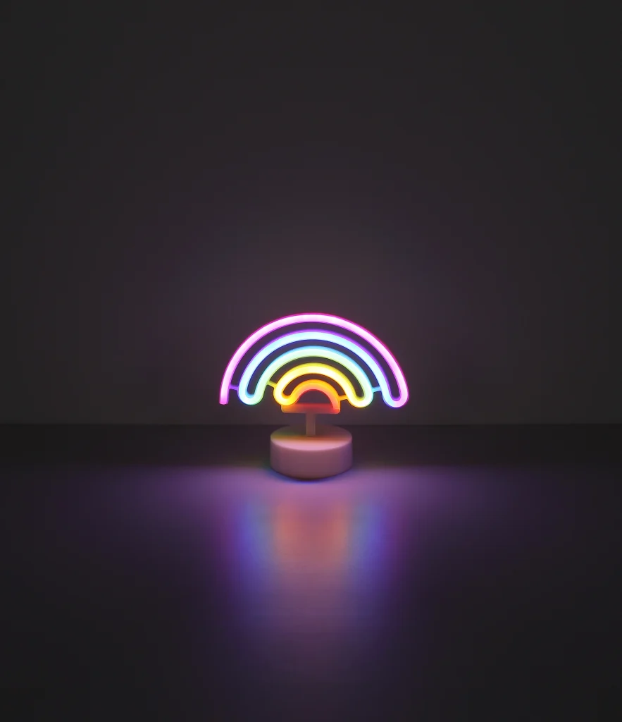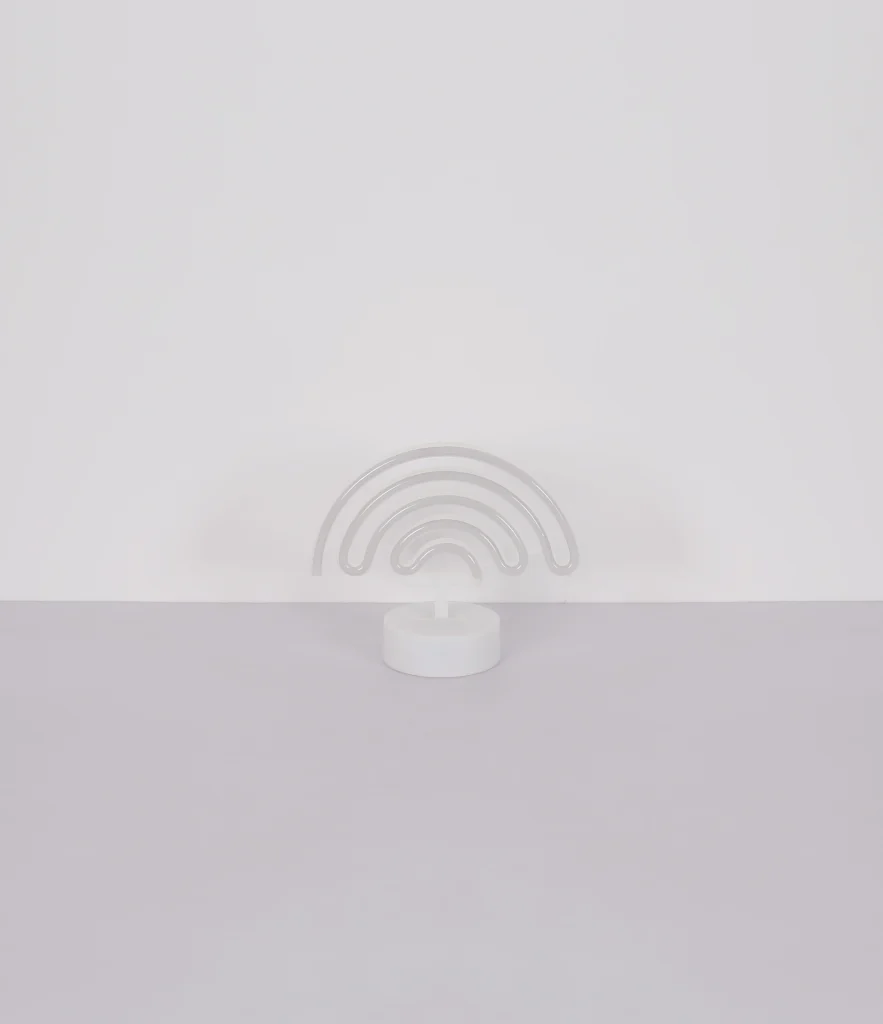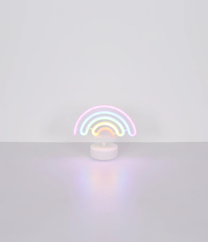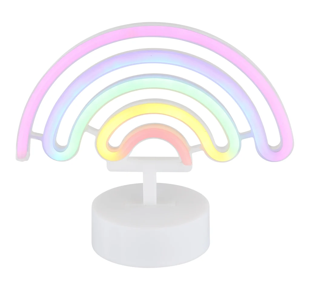 Dekorativna neonska lampa PELANGI unosi boju i radost u svaku prostoriju. Dizajn duginih boja napravljen od opal plastike pruža meko i atmosfersko svetlo. Plastično kućište u mat beloj boji daje lampi moderan izgled. Pomoću praktičnog kliznog prekidača, dugino osvetljenje se može lako kontrolisati. Ova dekorativna neonska lampa je idealna za svakoga ko želi da postavi šareni akcent u svoj životni prostor.