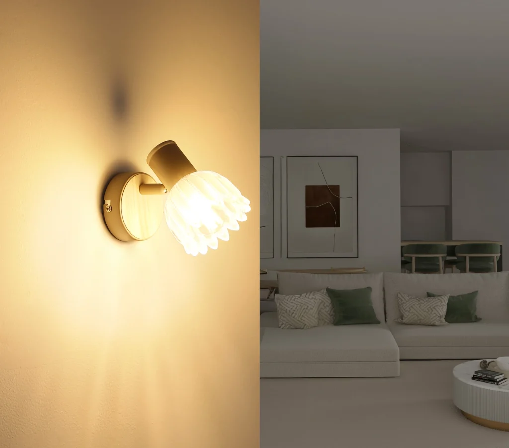 Zidna lampa PLANTA donosi prirodni šarm i suptilnu eleganciju svakom zidu. Njena okrugla zadnja ploča u mat boji peska, kombinovana sa akcentima u svetlom izgledu drveta, daje dizajnu topao, udoban izgled – idealan za hodnike, spavaće sobe ili dnevne sobe. Stakleni abažur sa satenskim cvetnim uzorkom pruža prijatnu, meku raspodelu svetlosti i ističe stilski efekat lampe. Sa širinom od 90 mm i projekcijom od 125 mm, PLANTA je kompaktna i svestrana – pogodna kao pojedinačni reflektor ili u kombinaciji sa drugim lampama iz serije. Reflektor je podesiv, što omogućava ciljano osvetljenje. Lampa je dizajnirana za sijalicu E14 (nije uključena), što omogućava individualno podešavanje boje svetlosti i osvetljenosti. PLANTA impresionira harmoničnim dizajnom, visokokvalitetnim materijalima i fleksibilnim primenama – dekorativno rešenje za osvetljenje sa prirodnim dodirom.