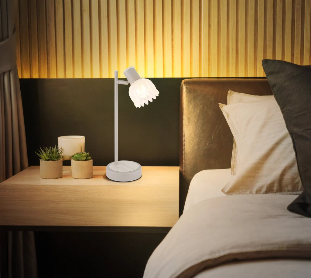 Stona lampa PLANTA kombinuje prirodni šarm sa modernim dizajnom i idealna je za stolove, noćne stočiće ili udobne kutke za čitanje. Ravna ruka napravljena od mat metala boje peska upotpunjena je svetlim akcentima sa efektom drveta, dajući lampi topao i privlačan izgled. Abažur od matiranog cvetnog stakla pruža nežnu, ravnomernu raspodelu svetlosti koja harmonično osvetljava prostoriju bez odsjaja. Sa dužinom od 170 mm i širinom od 120 mm, lampa je kompaktna i štedi prostor. Praktični prekidač na kablu omogućava lako i praktično rukovanje. Stona lampa je dizajnirana za E14 sijalice (nisu uključene), što vam omogućava da prilagodite boju svetlosti i osvetljenost. PLANTA impresionira visokokvalitetnim materijalima, promišljenim dizajnom i fleksibilnom funkcionalnošću – stilsko i praktično rešenje za osvetljenje koje stvara prijatnu atmosferu u svakoj prostoriji.