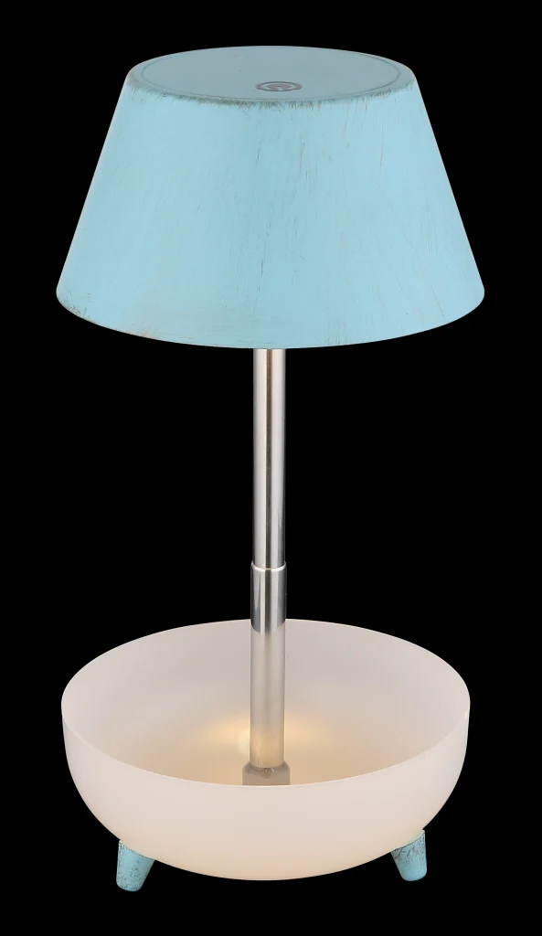 POKI je inovativna i praktična stona lampa koja se ističe svojim okruglim oblikom i savremenim izgledom. Telo POKI lampe je napravljeno od satenske plastike u dizajnu od nerđajućeg čelika i nudi elegantnu osnovu za svetleći okvir abažura. Plavo-antičko abažur pruža jedinstveno osvetljenje i daje POKI lampi jedinstven karakter. Zahvaljujući teleskopu i poslužavniku za sitne delove, POKI lampom se može lako i udobno rukovati. LED osvetljenje se može prigušiti i lako se reguliše pomoću funkcije prigušivača na dodir i prekidača za uključivanje/isključivanje na dodir. Sa prečnikom od 120 mm, POKI je savršen ulaz u svet modernih rešenja za osvetljenje. Izlaz je 100 lumena, vreme punjenja je oko 4 sata, dok je vreme osvetljenja oko 8 sati.