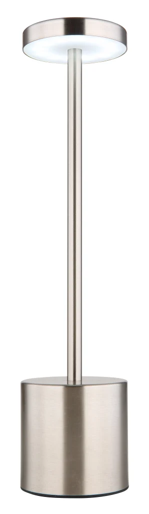 Stona lampa POLINA nudi ne samo stilski dizajn, već i praktične funkcije. Sa mat niklovanim kućištem i abažurom od opal plastike, savršeno se uklapa u moderne životne prostore. Zahvaljujući sistemu za uključivanje/isključivanje na dodir i bezstepenom dodirnom dimeru, osvetljenost se može individualno podesiti. Pored toga, boje se mogu fiksirati. Stona lampa je opremljena snažnom baterijom (CR18650 1200mAh 3.7V) koja se može napuniti za samo 4 sata i omogućava vreme rada do 6 sati. LED sijalica snage 1,2W i izlazne svetlosti od 138lm pruža prijatno osvetljenje sa 3 podesive opcije svetla u temperaturama boja 2000/7000/3500K. USB kabl je uključen, adapter se mora kupiti zasebno.