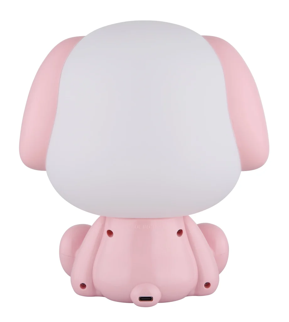 Stona lampa PUPPY unosi radost i boju u svaku prostoriju i savršen je dodatak za dečije sobe ili kreativne dnevne boravke. Sa svojim slatkim dizajnom psa koji sedi, privlači pažnju svih i stvara prijatnu atmosferu. Telo napravljeno od ružičaste i bele mat plastike daje lampi moderan i veseo izgled. Sa mekim svetlosnim izlazom od 32 lumena i temperaturom boje od 3000 K, PUPPY pruža prijatno osvetljenje koje podstiče blagostanje. Praktični dodirni dimer vam omogućava da je bez napora uključite i isključite, kao i da podesite osvetljenost. Adapter i USB kabl za punjenje su uključeni u obim isporuke, tako da je punjenje jednostavno. Svetlu je potrebno samo oko 2 sata da se potpuno napuni i nudi impresivno vreme rada do 12 sati. Takođe svetli tokom punjenja, što je čini idealnim pratiocem za atmosfersko osvetljenje.