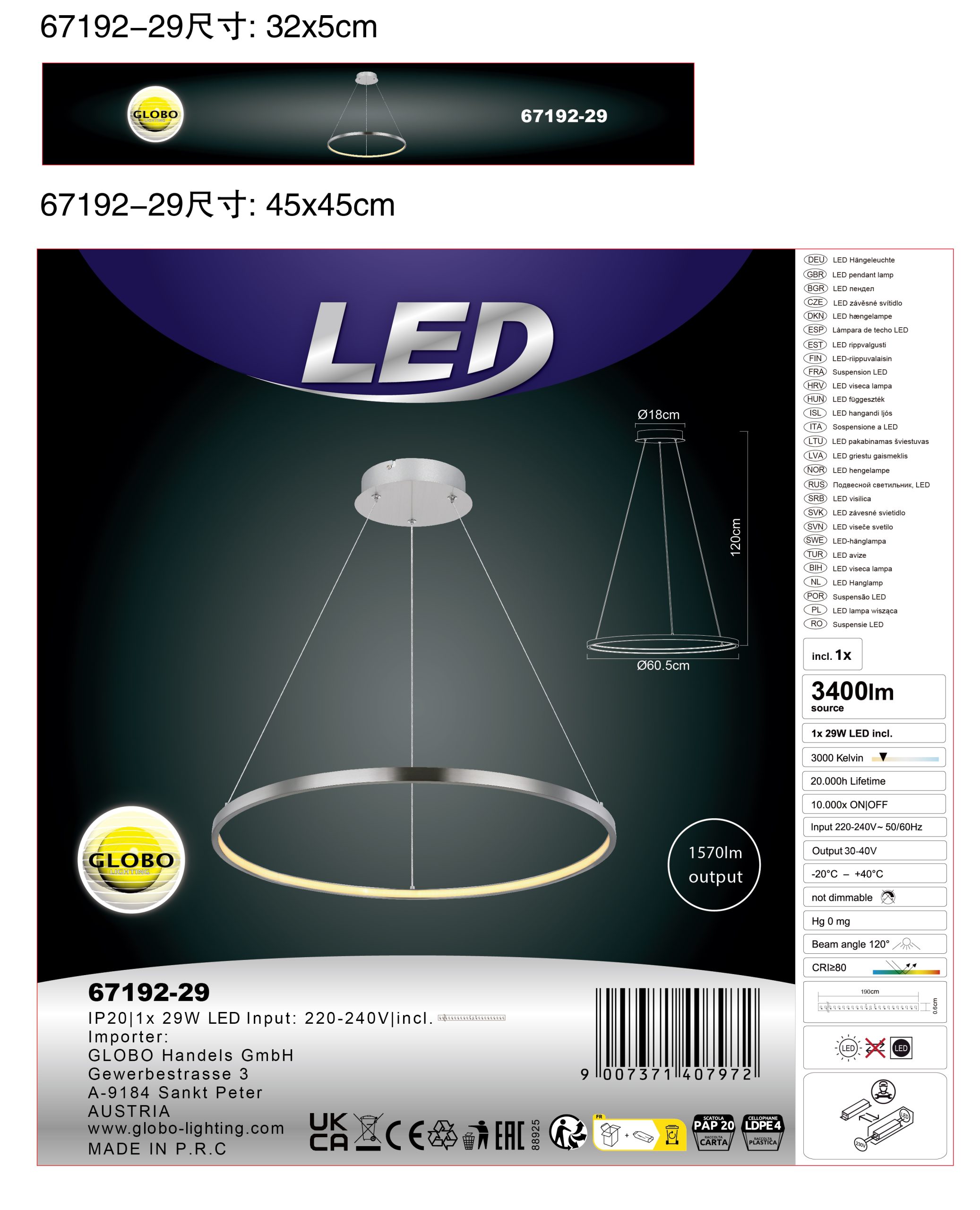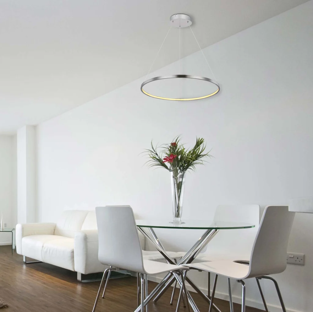 Sa ovom modernom, okruglom LED visećom lampom pod nazivom Ralf (Ø 60 cm) u mat niklu, garantovano ćete privući pažnju. Uključena LED sijalica od 29 vati pruža 1400 lumena svetlosti i omogućava vašem domu da sija toplo belom svetlošću (3000K). LED unutrašnje svetlo se može savršeno koristiti u bilo kojoj dnevnoj sobi/trpezariji ili hodniku. Možete ulepšati svoj dnevni boravak drugim modelima iz ove serije. Zahvaljujući niskoj potrošnji energije, ova LED lampa je štedljiva i stoga veoma ekološki prihvatljiva.