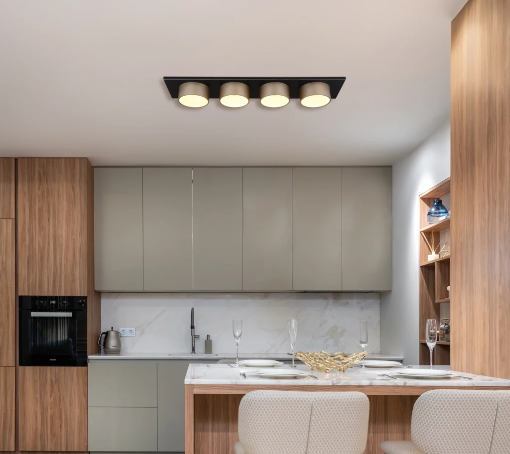 Plafonska lampa RAYMOND – moderan dizajn za stilsko osvetljenje. Pravougaona plafonska lampa RAYMOND kombinuje tehnički dizajn sa visokokvalitetnom estetikom. Telo napravljeno od mat crnog metala i antracit plastike daje lampi jasan, moderan izgled. Sa četiri okrugla reflektora, pruža ciljano i efikasno osvetljenje koje se savršeno uklapa u svaki koncept prostorije. Abažur napravljen od zlatne, mat plastike i opal plastike obezbeđuje ravnomernu raspodelu svetlosti i stvara prijatnu atmosferu. Sa temperaturom boje od 3000 K, lampa pruža toplo, privlačno svetlo. Integrisana LED tehnologija ne samo da garantuje energetsku efikasnost, već i dug vek trajanja. Plafonska lampa RAYMOND je savršena za moderne dnevne sobe, kancelarije ili trpezarije i postavlja stilske akcente. Vrhunac u svakoj prostoriji koji kombinuje funkcionalnost i dizajn!