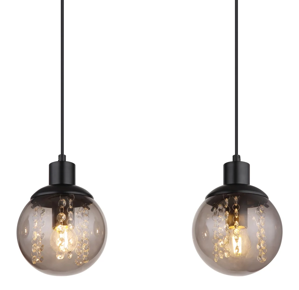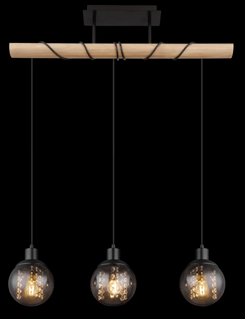 Ova prelepa viseća lampa iz serije RICHARD ubeđuje svojim sjajnim dizajnom i postaje centar vaših soba. Viseća lampa se sastoji od 3 dimljena staklena abažura sa dekoracijama od plastičnih kristala, od kojih je svaki opremljen grlom E27 i visi na crnim kablovima 1,2 m od plafona. Visina viseće lampe može se podesiti pomoću drvenog štapa dužine 78 cm jednostavnim obmotavanjem. Grla E27 vam omogućavaju da koristite sijalice po vašem izboru, do maksimalne snage od 25 vati. Sa drugim modelima iz ove serije možete ulepšati svoj dnevni boravak.