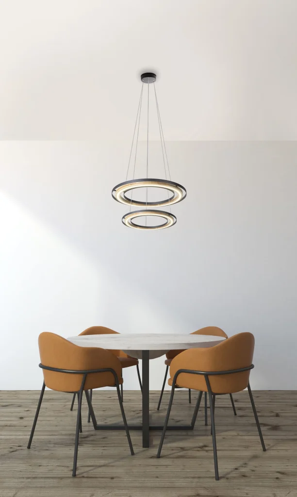 RILAS visilica od mat crnog metala i bambusa u prirodnoj boji kombinuje moderan dizajn sa funkcionalnošću. Sa prečnikom od 560 mm i promenljivom visinom od 1000 do 1500 mm, može se optimalno prilagoditi visini vaše prostorije. Funkcija zatamnjivanja, koja se kontroliše preko zidnog prekidača, omogućava individualni dizajn osvetljenja, dok uključeni LED modul sa 21V i svetlosnim tokom od 4500lm na 3000K obezbeđuje svetlo i prijatno osvetljenje. Ova viseća lampa je savršena za trpezarije ili dnevne sobe, gde dodaje stilske akcente dok stvara ugodnu atmosferu. Svojom visokokvalitetnom izradom i atraktivnim dizajnom, visilica RILAS predstavlja obogaćenje svakog modernog enterijera.