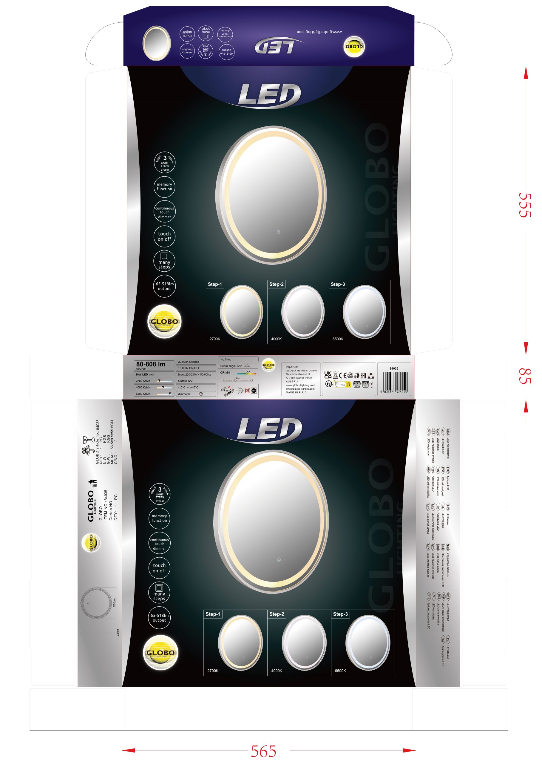 Otkrijte RIVAS LED osvetljenje za ogledala, koje nudi jedinstvenu mešavinu ogledala i LED osvetljenja. Telo osvetljenja je pravo metalno ogledalo sa nikl-mat površinom, koje je zadržano u zaobljenom dizajnu. Abažur je napravljen od satenske plastike i savršeno se uklapa u oblik ogledala. LED osvetljenje se može beskonačno podešavati pomoću dodirnog dimera, koji takođe ima funkciju memorije. To znači da se osvetljenost uvek resetuje na poslednji nivo kada se osvetljenje ponovo uključi. Pored toga, boja osvetljenja se može fiksirati kako bi se stvorila prava atmosfera. Funkcija dodirnog uključivanja/isključivanja može se lako i jednostavno koristiti za aktiviranje ili deaktiviranje osvetljenja. Sa izlazom od 650 lumena i temperaturom boje od 3000 K do 6000 K, ovo osvetljenje nudi širok raspon temperatura svetlosti, od toplo bele do hladno bele. Idealno je za kupatilo, gde može postati stilski dodatak.