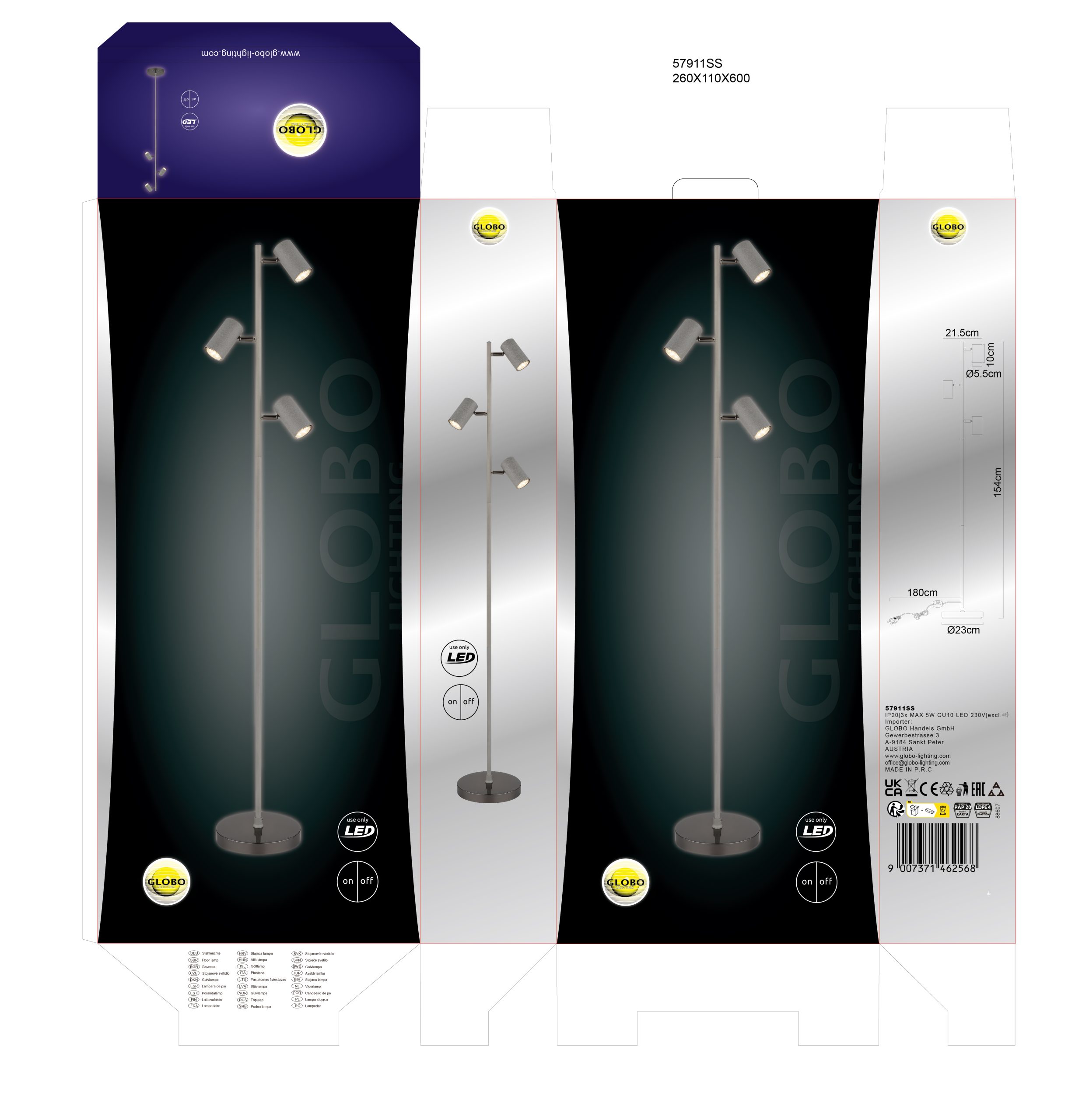 ROBBY – elegantna i moderna podna lampa koja se ističe svojim zaobljenim oblikom i tri cilindrična reflektora. Podna lampa se sastoji od ravne cevi koja nosi cilindrični reflektor. Tehnički dizajn ROBI-ja je kombinacija umetnosti i inženjeringa koja se savršeno uklapa u svako moderno okruženje. Telo je napravljeno od crnog i hromiranog metala, dok je abažur napravljen od sivog mat metala. Posebna karakteristika ove svetiljke je jednostavno rukovanje pomoću nožnog prekidača na kablu. Ova jedinstvena kombinacija oblika i funkcija čini ROBBY pravim uređajem koji privlači pažnju! ROBBY je savršen za svakoga ko želi da obrati pažnju na stil i funkcionalnost.