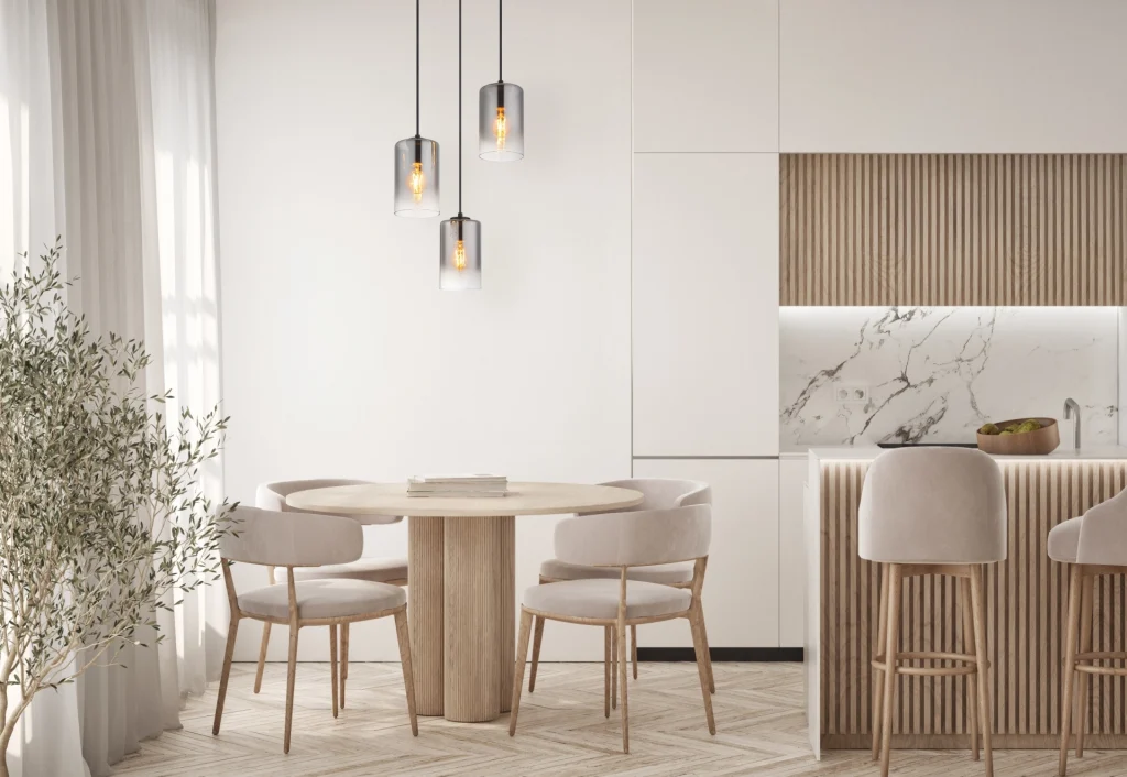 Viseća lampa ROJ je elegantan element osvetljenja za vaš dom. Sa prečnikom od 370 mm i visinom od 1200 mm, nudi moderan i stilski dizajn. Mat crni metal u kombinaciji sa dimljenim staklom u providnom gradijentu stvara toplu, privlačnu atmosferu. Crni tekstilni kabl se savršeno uklapa u celokupnu sliku. Ova viseća lampa sadrži 3x E27 60W 230V, tako da možete odabrati izvor svetlosti prema svojim željama. Idealna iznad stolova ili u otvorenim dnevnim boravcima, viseća lampa ROJ unosi svetlost i eleganciju u vaš dom.
