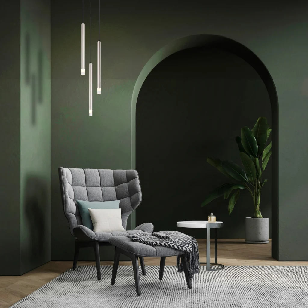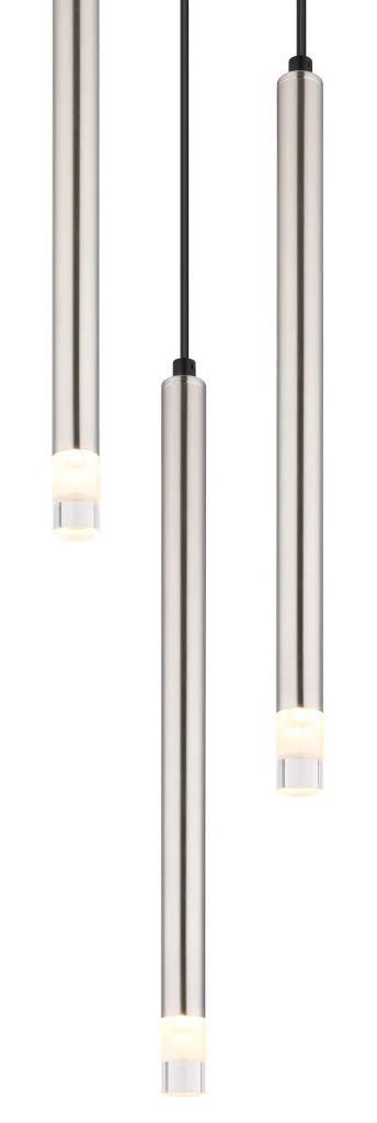 Viseća lampa RYAN ima moderan i elegantan dizajn, savršen za savremene enterijere. Njeno okruglo kućište od mat nikla daje joj stilski dodir i harmonično se integriše u različite životne prostore. Viseća lampa je opremljena sa tri tanka, cilindrična abažura, koja su takođe napravljena od mat nikla i akrila sa satenskom završnom obradom. Ova kombinacija obezbeđuje prijatnu i ravnomernu raspodelu svetlosti. RYAN je idealna kao osvetljenje iznad trpezarijskih stolova, u dnevnim sobama ili drugim životnim prostorijama. Kombinuje funkcionalnost sa estetskim izgledom i postavlja stilske akcente. Jasan i jednostavan dizajn čini je bezvremenskim elementom u dizajnu enterijera. Viseća lampa RYAN je savršen izbor za one koji traže visokokvalitetno rešenje za osvetljenje koje je i praktično i stilsko, a istovremeno stvara prijatnu atmosferu.